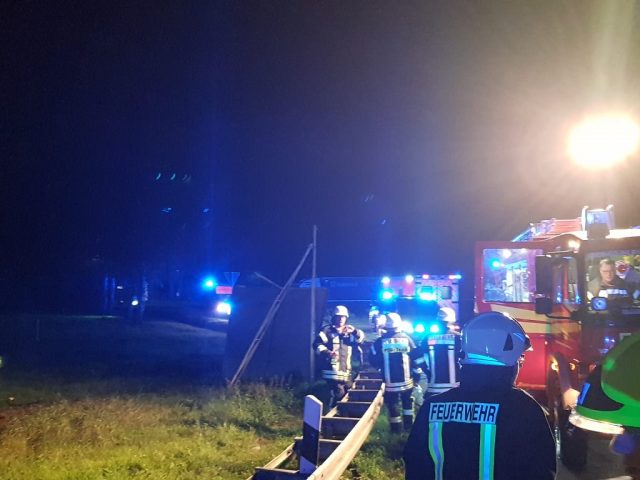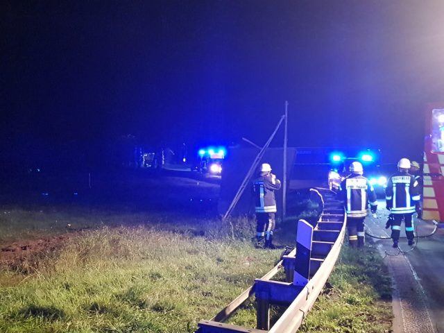 Die Feuerwehr unterstützte die Versorgung der Verletzten und leuchteten die Einsatzstelle aus. Zudem wurde mit einer Wärmebildkamera kontrolliert, ob evtl noch weitere Personen verletzt waren. Nach der Unfallaufnahme durch die Polizei wurde nach Bergung des fahrzeuges die Fahrbahn gereinigt.