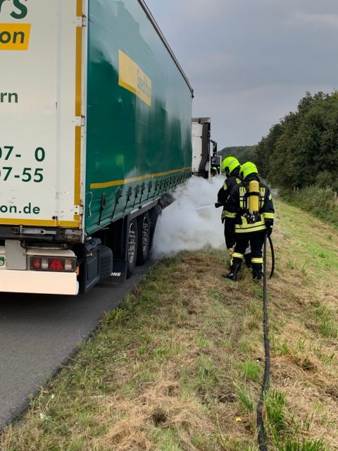 Gegen 18:44 Uhr wurde die Feuerwehr Gescher zu einem Fahrzeugbrand auf die A31 Richtung Emden gerufen. Kurz vor der Abfahrt Legden war es zu einem Brand eines Rades der Hinterachse eines Sattelaufliegers gekommen. Die Feuerwehr löschte den Reifen mit einem C-Rohr unter Atemschutz ab. Das Feuer konnte auf den Reifen begrenzt werden.