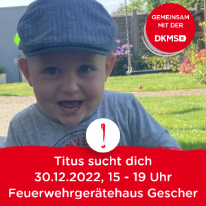 15.12.2022: Typisierungaktion für Titus am 30.12. an der Feuerwache Gescher