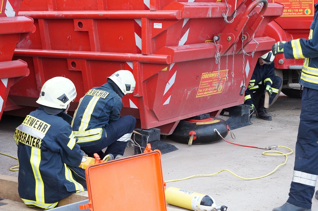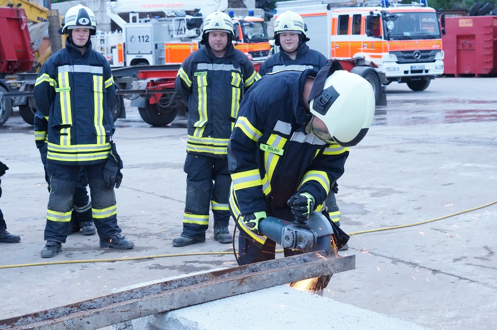 Der Feuerwehr stehen zur technischen Hilfeleistung eine Vielzahl von verschiedenen Gerätschaften zur Verfügung. Damit diese im Einsatzfall schnell und sicher bedient werden können stand der letzte Dienstabend ganz im Fokus von einigen Gerätschaften. So galt es an verschiedenen Stationen den sicheren Umgang mit dem Greifzug, den Hebekissen, den Hydraulikhebern sowie den Winkelschleifer zu beüben. Dazu stand das Gelände des Entsorgungsunternehmen Oberwies zur Verfügung und bot reichlich Übungsgegebenheiten.