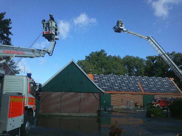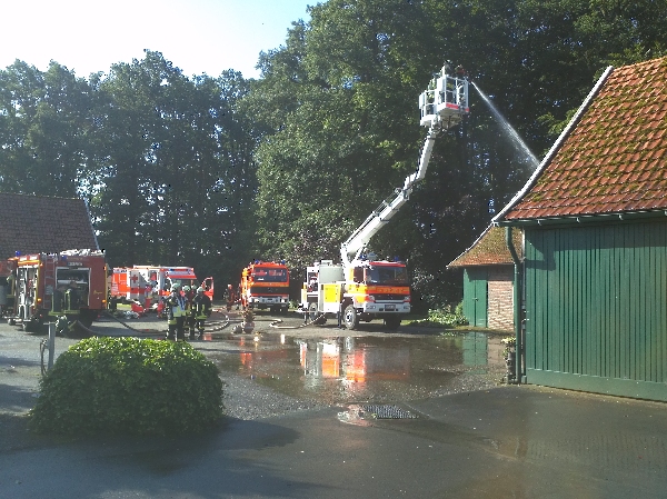 Da die Wasserversorgung unzureichend war, wurde neben der Feurwehr Gescher auch die Feuerwehr Südlohn gerufen. Die Kameraden der Feuerwehr Gescher wurden zur Wasserversorgung und zum Abschirmen der rückwertigen Scheune eingesetzt.