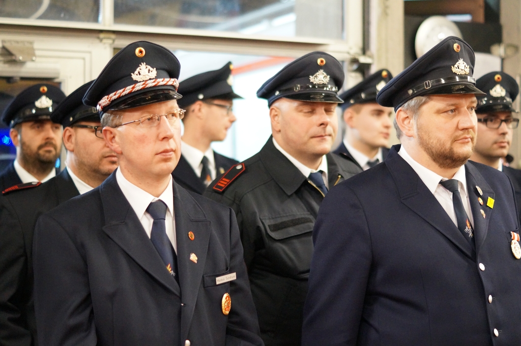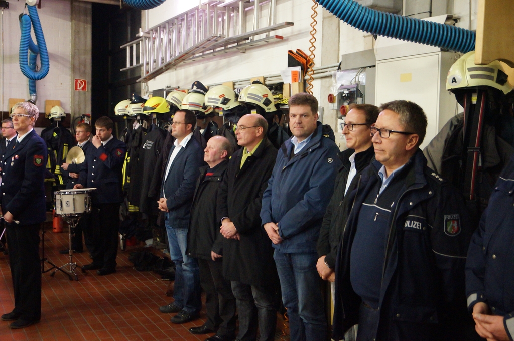Der Spielmannszug eröffnete die offizielle Übergabe mit einem Musikstück.Der Stadtbrandinspektor (STBI) Christian Nolte, konnte neben Bürgermeister Thomas Kerkhoff und der Feuerwehrmannschaft auch Vertreter des Rates, den Pfarrer Paulus Phan, den Ordnungsamtsleiter Christian Prost, Abordnungen von Polizei und DRK sowie Verteter aller beteiligten Firmen begrüssen.