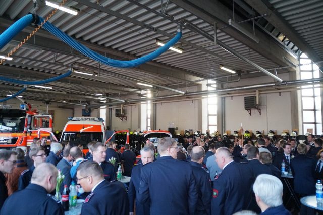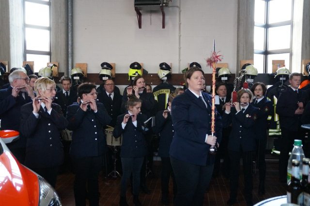 Die Fahrzeugübergabe wurde mit einem Musikstück vom Spielmannszug eröffnet. Der Stadtbrandinspektor Christian Nolte konnte dann neben den Feuerwehrkameraden von der Jugendfeuerwehr bis zur Ehrenabteilung, den Bürgermeister Thomas Kerkhoff, Vertreter der Fraktionen, der Nachbarfeuerwehren, dem DRK Ortsverein, der Polizei und den Fahrzeuglieferanten (Herr Aust für MAN, Herr Twyhues für Mercedes und Herr Bessler und Herr Terhardt für Ford) auch den alten Ordnungsamtsleiter Herrn Prost und den neuen Herrn Tegeler begrüssen. Zudem begrüßte er Pastor Wenning sowie die Prädikantin Frau Ebbert-Brüggemann als Vertreter der katholischen und evangelischen Kirche.