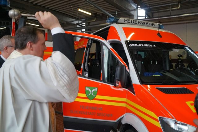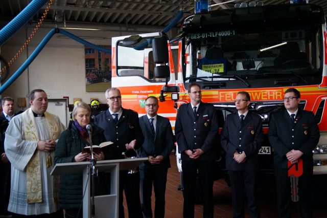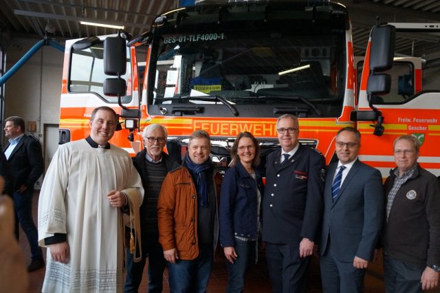 Gleich 3 Fahrzeuge konnte die Feuerwehr Gescher für die Bevölkerung Geschers jetzt offiziell in den Einsatzdienst übernehmen. Dazu wurden die Fahrzeuge vom Bürgermeister übergeben. Anschließend wurde die Fahrzeuge und die Einsatzkräfte in einer ökunemischen Feier von der evangelischen wie auch katholischen Kirche gesegnet.