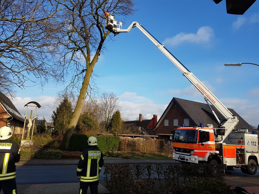 Die Feuerwehr war aber bereits über den ganzen Tag gefordert. So galt es noch verschiedene Einsatzstellen aufgrund des Sturmtiefs abzuarbeiten. So musste auch das HLF von einer Einsatzstelle zu dem Verkehrsunfall abgezogen werden. Diese Einsatzstelle wurde anschließend vorgesetzt. Zudem forderte eine Ölspur gegen die Mittagszeit von der A31 über die B 525 und L 608 bis nach Stadtlohn umfangreiche Absperrmassnahmen.