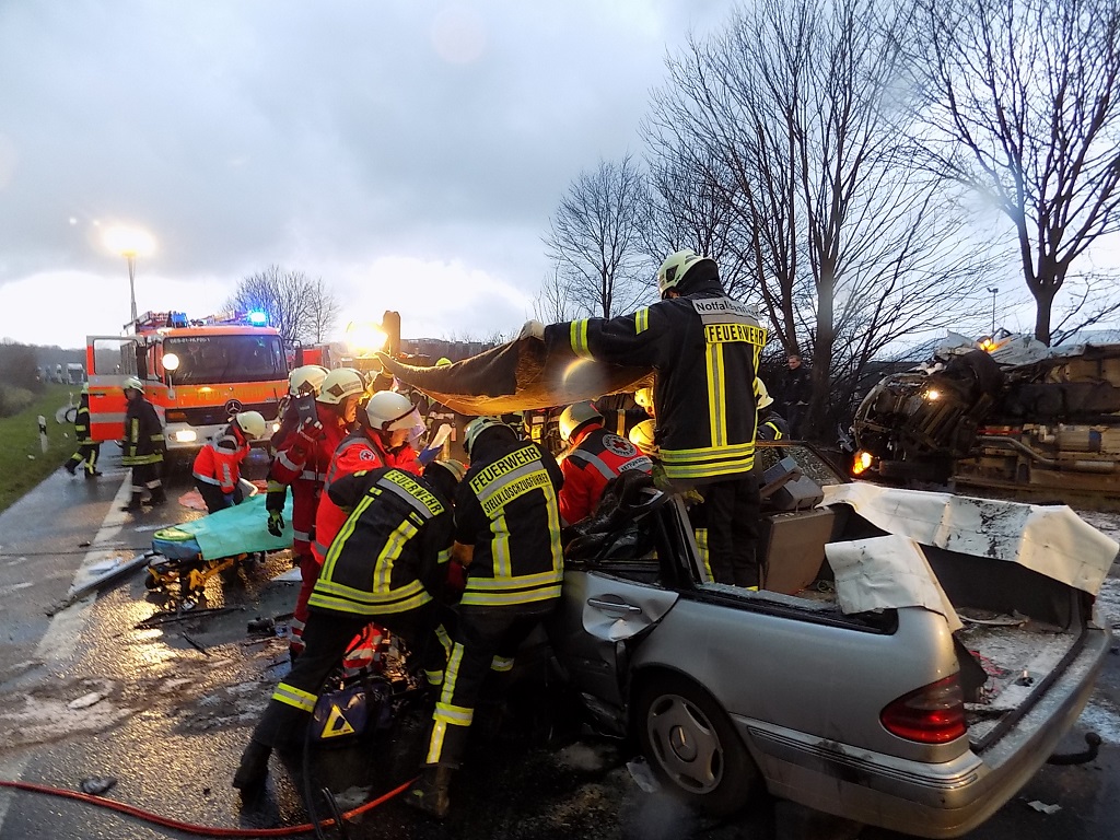 Einsatzstichwort: Verkehrsunfall mehrere Personen eingeklemmt