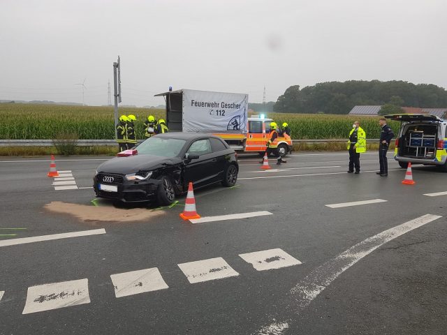 Gegen 7:40 Uhr wurde die Feuerwehr zu einem Verkehrsunfall auf der Kreuzung L 608 / Stadtlohner Straße gerufen. Dort waren zwei PKW zusammengestossen. Die Fahrer wurden bereits durch den Rettungsdienst in zwei Rettungswagen versorgt. DiePatienten wurden ins Krankenhaus gefahren. Die Feuerwehr sicherte zunächst die Einsatzstelle ab. Anschließend wurde der Verkehr durch die Polizei wechselseitig an der Unfallstelle vorbei geführt. Die Feuerwehr streute die auslaufenden Betriebsstoffe ab und unterstütze bei der Fahrzeugbergung durch ein Abschleppunternehmen.