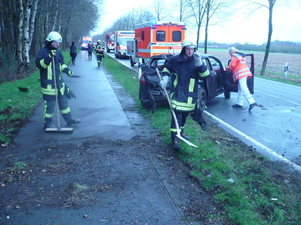 Zu einenm Verkehrsunfall ist der Löschzug Hochmoor am Samstag Nachmittag gerufen worden. Auf der L 608 ist ein PKW verunfallt. Da Betriebsstoffe ausliefen wurde der Löschzug Hochmoor hinzualarmiert. Diese reinigte die Fahrbahn.