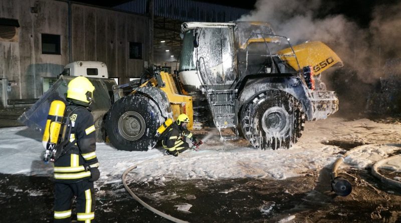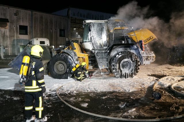 Gegen 4:45 Uhr wurde die Feuerwehr Gescher zu einem von Mitarbeitern gemeldeten Radladerbrand auf einem Firmengelände auf der Liebigstraße gerufen. Mitarbeiter bemerkten eine Qualmentwicklung an einem Radlader. Ein Mitarbeiter fuhr sofort den qualmenden Radlader aus der Produktionshalle auf eine Freifläche vor der Halle. Sie verständigten die Feuerwehr und begannen mit zwei Schläuchen die erste Brandbekämpfung. Durch den Einsatz eines Wandhydranten wurde zudem die Brandmeldeanlage ausgelöst. Während der Radlader bei Eintreffen der Feuerwehr bereits in Vollbrand stand, konnte eine Ausbreitung des Feuers auf Lagerflächen und einem in der Nähe stehenden LKW verhindert werden. Die Feuerwehr setzte dazu zunächst zwei C-Strahlrohre unter Atemschutz ein, um das Feuer weitestgehend zu löschen. Anschließend wurde der Radlader mit Schaummittel abgedeckt und das Fahrzeug mit einer Wärmebildkamera kontrolliert. Zur Wasserversorgung wurde zusätzlich das Tanklöschfahrzeug aus Stadtlohn alarmiert. Der Einsatz war nach ca. 1,5 Stunden beendet.