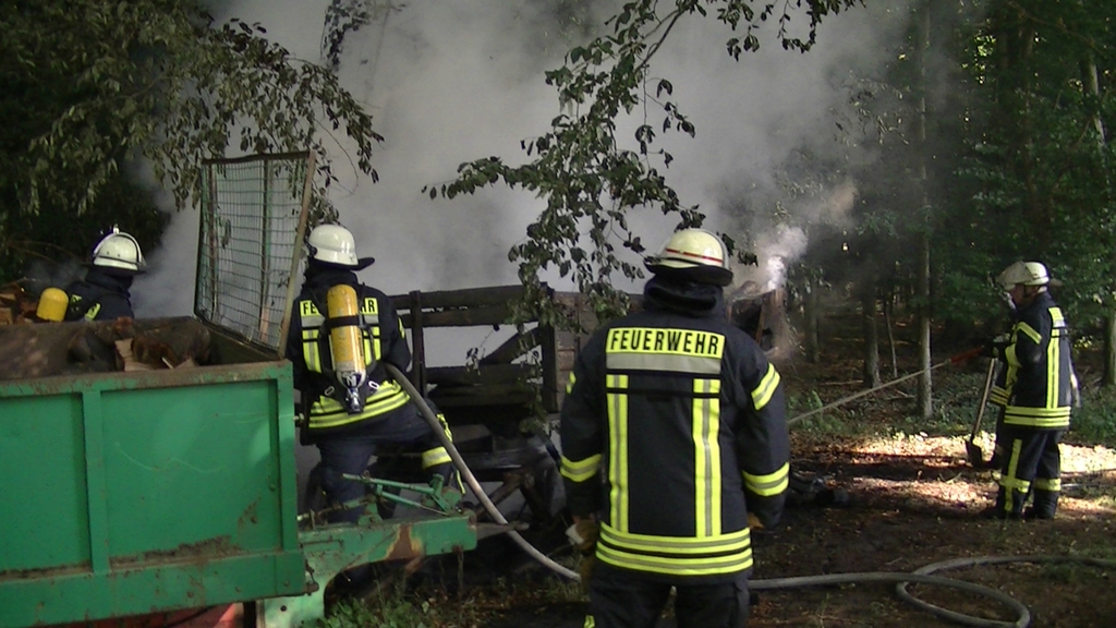 20.07.2015: brennender Anhänger mit Brennholz in Beikelort
