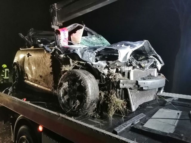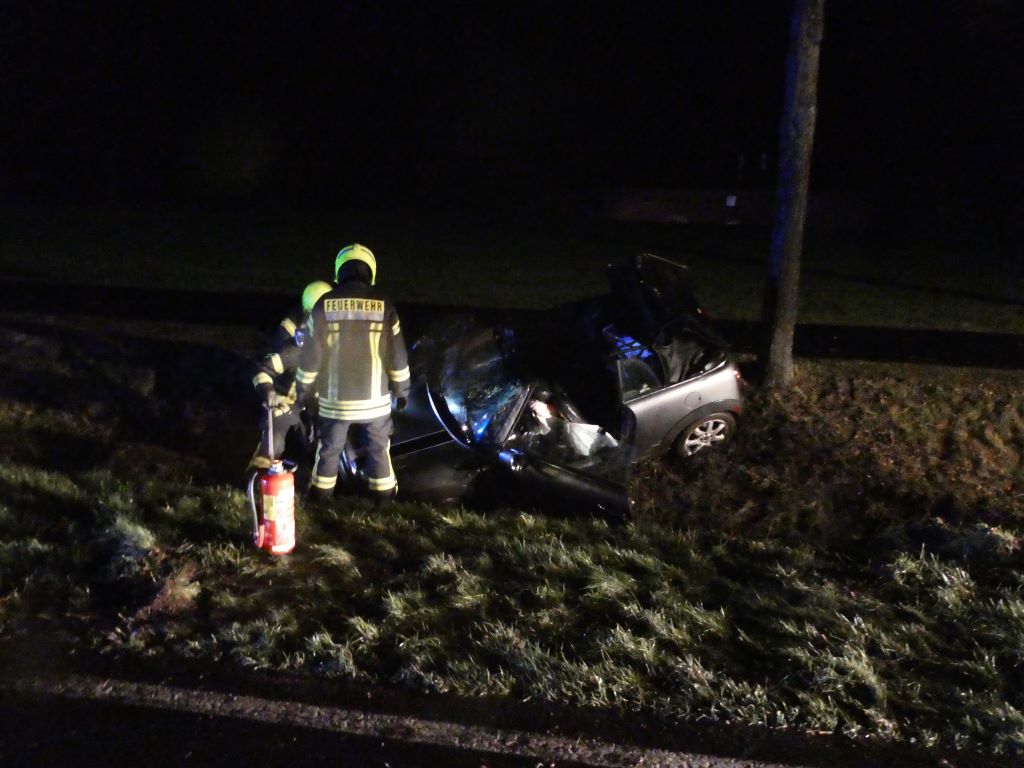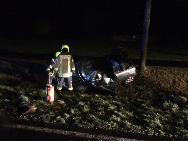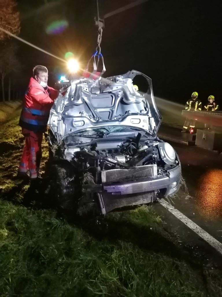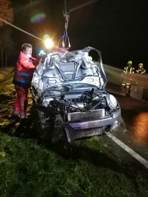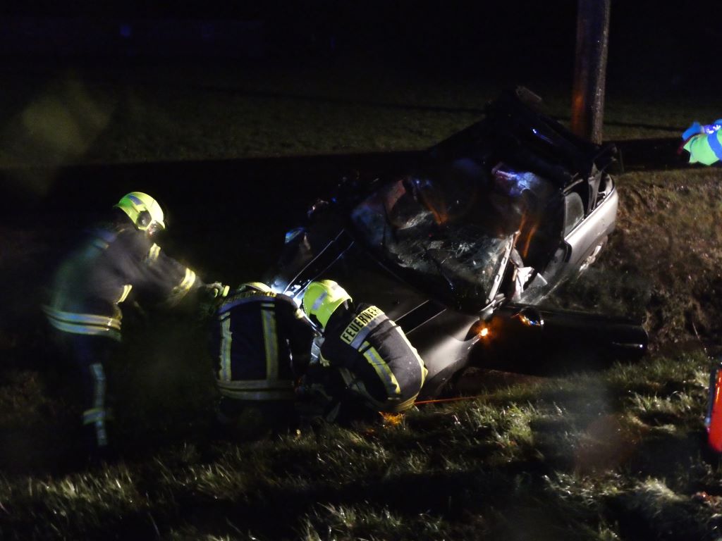 Gegen 22:43 Uhr wurde zunächst der Löschzug Hochmoor und kurz darauf der Löschzug Gescher zu einem Verkehrsunfall auf der L 608 zwischen Gescher und Hochmoor unweit der Autobahnbrücke mit dem Stichwort Person eingeklemmt sowie mehrere Verletzte alarmiert. Vor Ort war eine PKW-Fahrerin mit einem Pferd auf der Fahrbahn kollidiert. Nach der Kollision ist der PKW in den Graben gerutscht. Die PKW-Fahrerin verletzte sich. Sie wurde vor Eintreffen des Rettungsdienstes und der Feuerwehr bereits durch zwei Ersthelfer (ein Notarzt sowie 1 Feuerwehrkamerad aus Hochmoor) aus dem Fahrzeug befreit und versorgt. Sie wurde mit dem Rettungswagen ins Krankenhaus gebracht. Das Pferd starb durch den Aufprall, ein weiteres Pferd wurde verletzt und durch die eingetroffene Besitzer von der Einsatzstelle geführt.