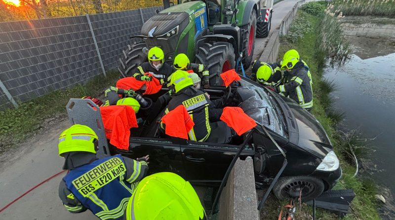 Bei einer realitätsnahen Einsatzübung war der Löschzug Hochmoor gestern zu Gast bei der Heermann Abbruch GmbH in Hochmoor Angenommen wurde ein Verkehrsunfall zwischen einem Trecker und einem PKW, bei dem eine Person im Fahrzeug eingeklemmt war.