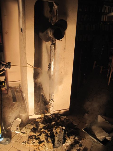 Um 2:30 uhr ist die Feuerwehr Gescher zu einem Kaminbrand gerufen worden. Vor Ort war eine Verrauchung festzustellen, so dass der Hochleistungslüfter zum Einsatz kam. Für die Bewohner ist vorsorglich der Rettungswagen hinzugerufen worden, kam jedoch nicht zum Einsatz. Gleichzeitig wurde der Kaminzug kontrolliert und gekehrt. Hier kam der TM zum Einsatz. Zudem wurde der Bezirksschornsteinfeger hinzugezogen. Die Wärmebildkamera zeigte dann den eigentlichen Brandort hinter einer Wandverkleidung. In Höhe eines Knickes im Kaminrohr hat sich Dämmmaterial entzündet und kockelte vor sich hin. Der Ofen wurde demontiert und die Wandverkleidung aus Gipskarton mit der Tigersäge geöffnet. Das Dämmmaterial wurde dann abgelöscht und zur Sicherheit nach draußen gebracht. Der Sachschaden beträgt ca. 5.000 EUR. Alles im Allem ist der Einsatz recht glimpflich ausgegangen jedoch wurde dringend darauf hingewiesen Rauchmelder zu installieren.