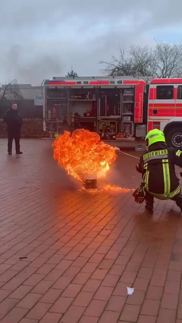 Am vergangenen Donnerstag unterstützte die Feuerwehr Gescher beim Schulunterricht der Jahrgangsstufen 7 an der Gesamtschule Gescher. Das Fach Naturwissenschaften wurde an diesem Tag kurzerhand auf den Schulhof verlegt, den die Feuerwehr wartete dort mit viel Technik. So wurde an verschiedenen Stationen unterschiedliche Arten der Brandbekämpfung und der Aufbau und die Funktion eines Feuerwehrautos gezeigt. Zudem konnten die Schüler auch Teile der persönlichen Schutzausrüstung anlegen. Bei den praktischen Übungen wurde die Rauchverteilung in einem Gebäude und die Funktion eines Rauchmelders in einem Rauchhausmodell gezeigt. Zudem durften die Schüler Übungs-Feuerlöscherausprübieren. Zum Ende der Doppelstunde wurde eine kontrollierte Fettexplosion demonstriert.