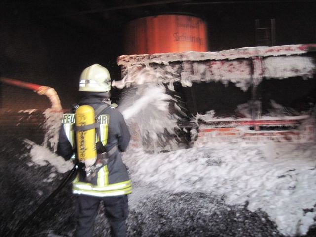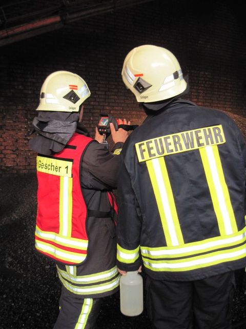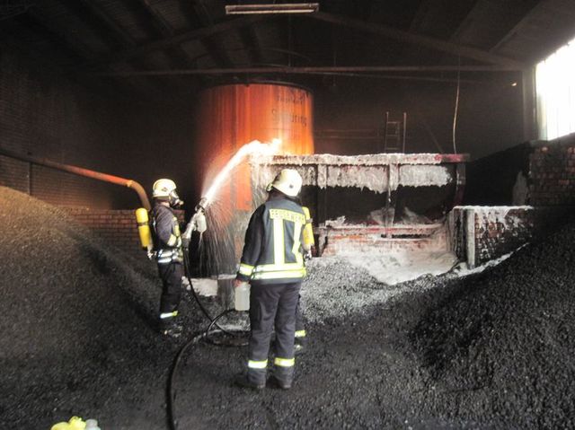 Am späten Nachmittag sind Kameraden der Feuerwehr Gescher erneut zur Ziegelei am Ahauser Damm gefahren um eine Nachkontrolle mit der Wärmebildkamera durchzuführen. Hierbei wurde festgestellt, dass sich unterhalb des Kohlebunkers erneut einzelne Glutnester gebildet hatten und einzelne Maschinenteile aufgeheizt waren. Da man mit Wasser nicht tief genug eindringen konnte, wurde Schaummittel beigemischt. Es wurde ein leichter Schaumteppich aufgetragen und erneut mit der Wärmebildkamera kontrolliert.