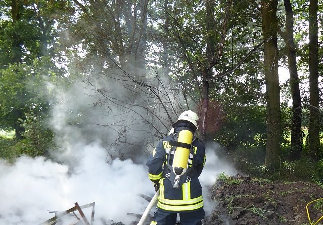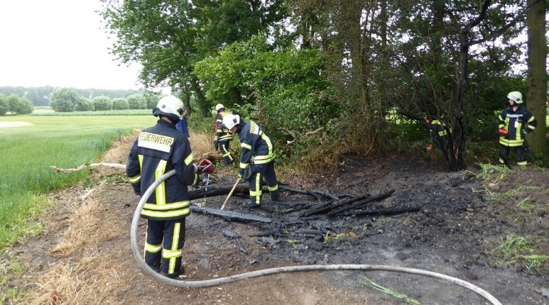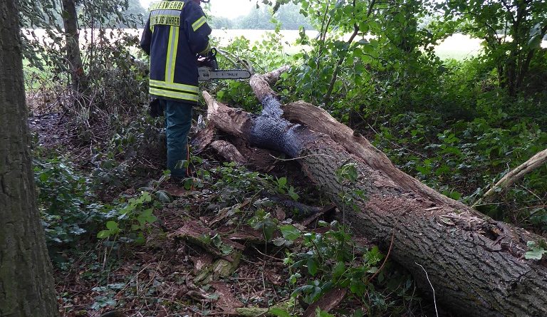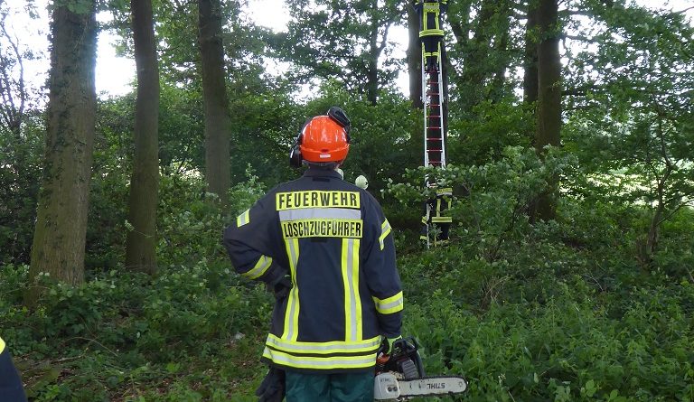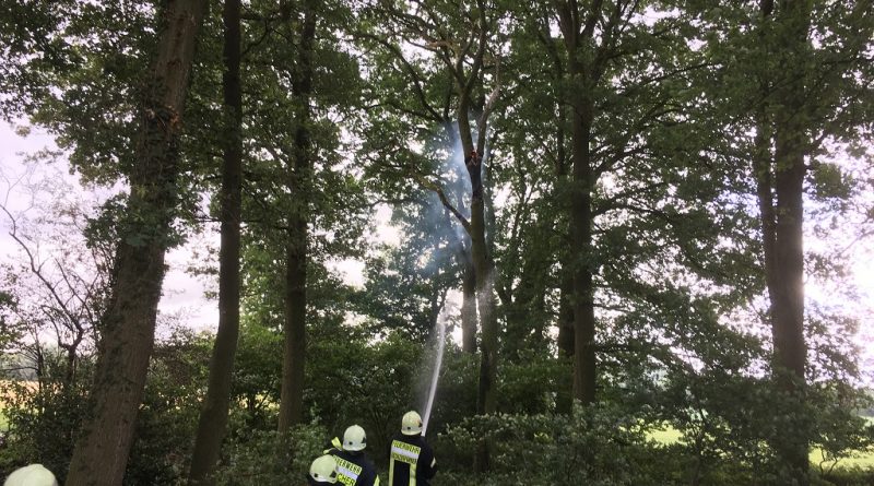 Ein Flächenbrand hat in Büren auf einen Baum übergegriffen. Der Brand war zunächst auf einer Fläche von ca 6 x 5 m aus unbekannten Gründen ausgebrochen. Wahrscheinlich sorgte dann Funkenflug dafür das ein etwas entfernter Baum in ca 8 m Höhe zu brennen anfing. Der Baum und die Fläche wurden zunächst abgelöscht. Anschließend wurde der Baum gefällt und der Baum abschließend gelöscht.