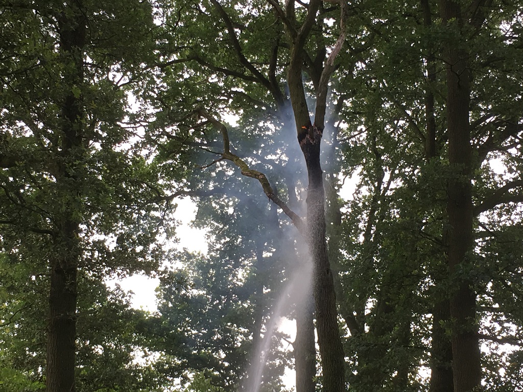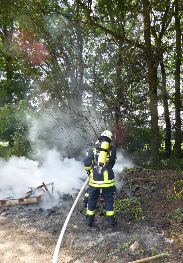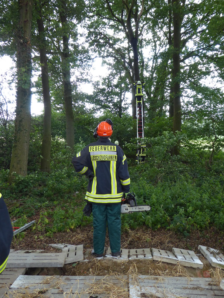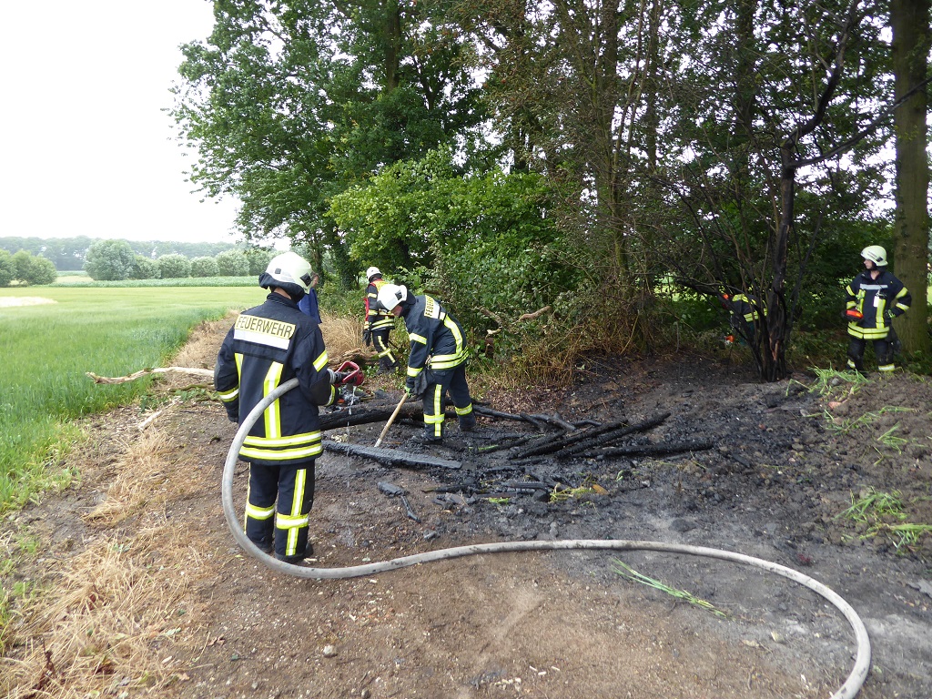 Ein Flächenbrand hat in Büren auf einen Baum übergegriffen. Der Brand war zunächst auf einer Fläche von ca 6 x 5 m aus unbekannten Gründen ausgebrochen. Wahrscheinlich sorgte dann Funkenflug dafür das ein etwas entfernter Baum in ca 8 m Höhe zu brennen anfing. Der Baum und die Fläche wurden zunächst abgelöscht. Anschließend wurde der Baum gefällt und der Baum abschließend gelöscht.