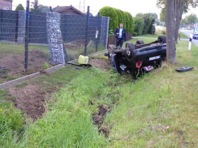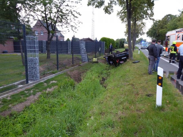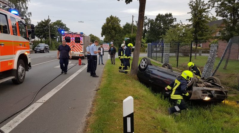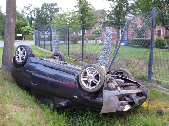 Gegen 6:15 Uhr wurde die Feuerwehr zu einem Alleinunfall auf die Stadtlohner Straße gerufen worden. Dort war ein PKW-Fahrer wahrscheinlich aufgrund eines medizinischen Problems von der Fahrbahn abgekommen und durch einen Graben gegen einen Gitterzaun gefahren. Dabei überschlug sich der PKW und blieb auf dem Dach im Graben liegen.