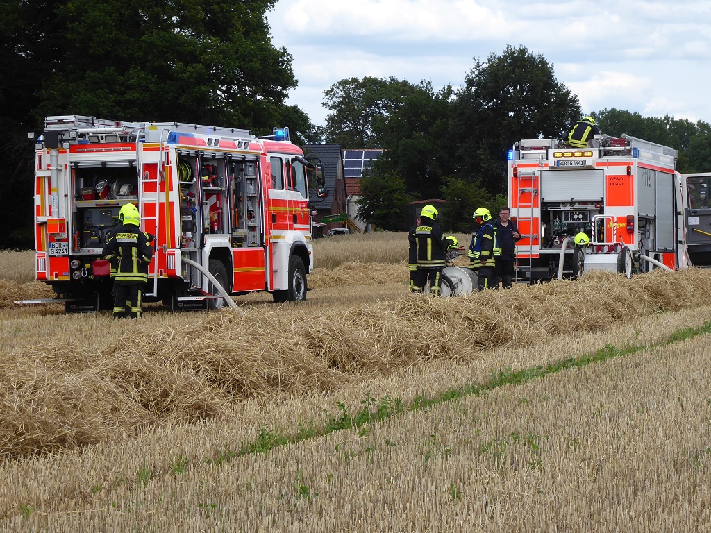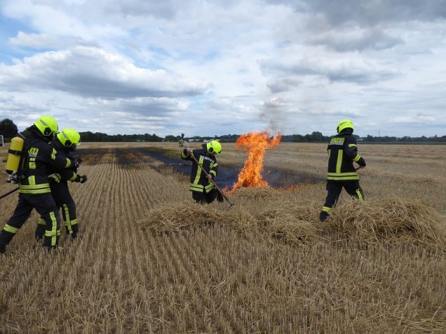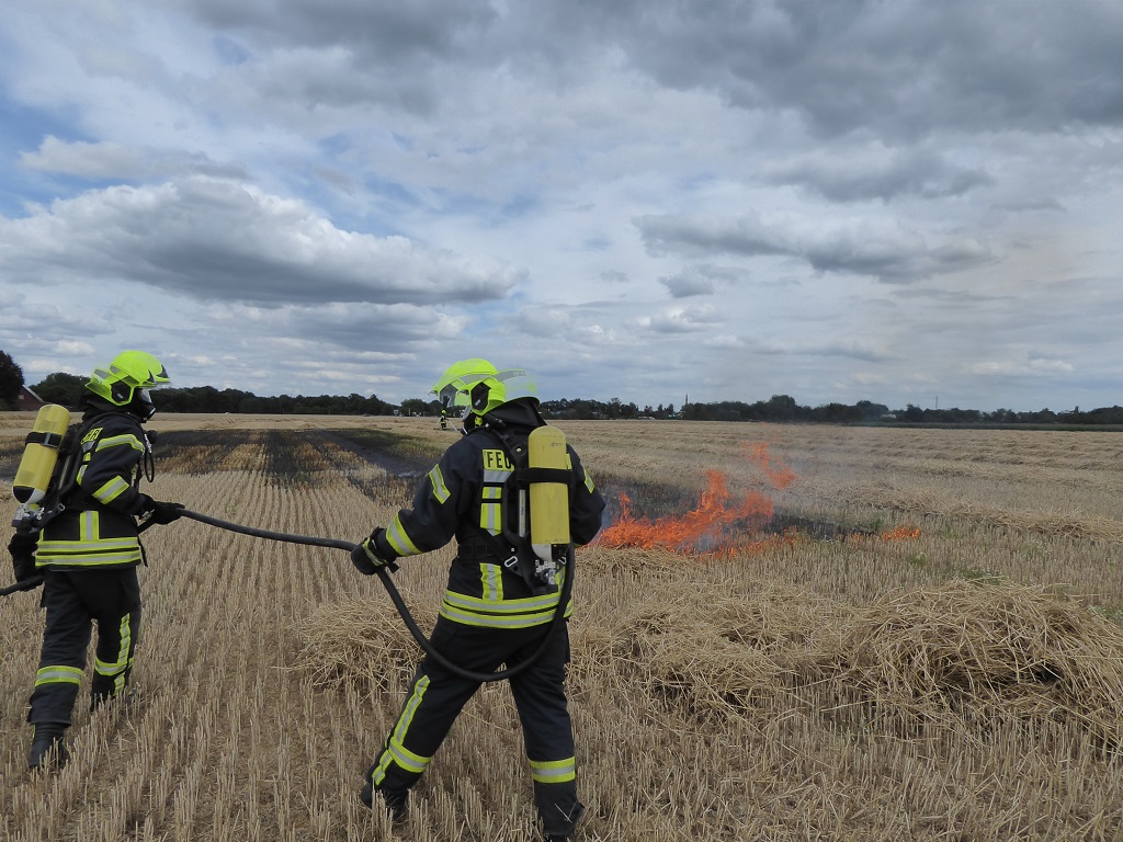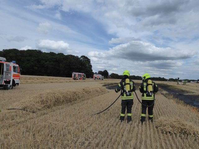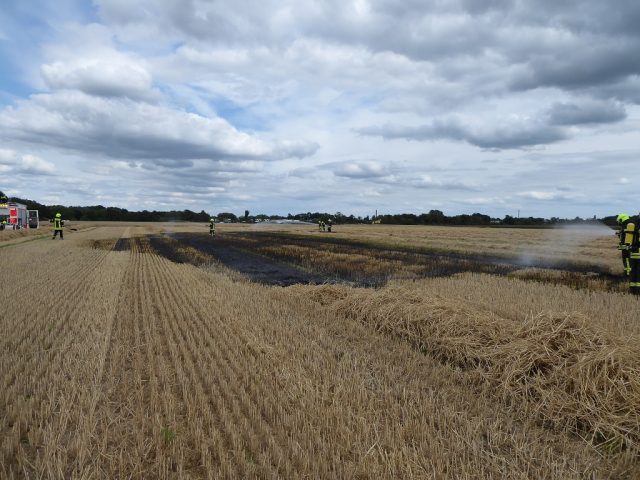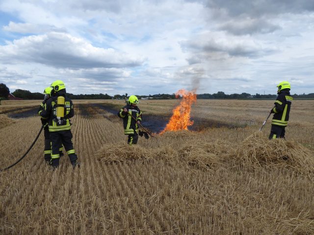 Gegen 15:45 Uhr wurde die Feuerwehr Gescher zu einem Flächenbrand auf einer landwirtschaftlichen Fläche in Estern gerufen. Dort ist es zu einem Feuer auf einem Strohfeld gekommen. Die Feuerwehr konnte das Feuer auf einer Fläche von ca. 150 m2 begrenzen. Dazu wurden drei Strahlrohre sowie eine Feuerpatschen eingesetzt. Das Wasser aus den Fahrzeugtanks der Feuerwehr Gescher war ausreichend, so das das hinzualarmierte Tanklöschfahrzeug der Feuerwehr Stadtlohn nicht mehr tätig werden musste.