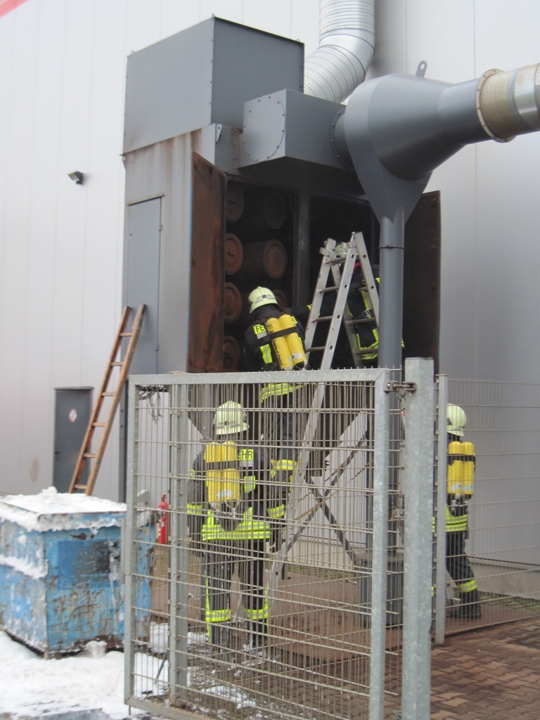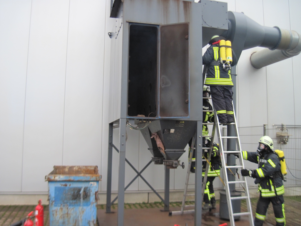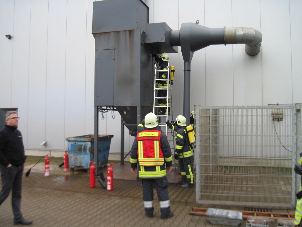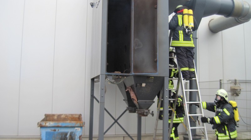Gegen 10:40 Uhr ist die Feuerwehr Gescher zu einem Brand in einer Absauganlage in einem metallverarbeitenden Betrieb an der Marie-Curie-Straße gerufen worden. In der Absauganlage hatten die Filter angefangen zu brennen. Die Feuerwehr Gescher setzte 3 Trupps unter Atemschutz ein um die Filteranlage der Absaugung kontrolliert zu öffnen und die Filter auszubauen und in einem Abfallcontainer abzulöschen. Abschließend wurde die Filteranlage mit der Wärmebildkamera auf Glutnester kontrolliert. Der in der Filteranlage befindliche Metallstaub sorgte für eine starke Verschmutzung der eingesetzten Atemschutztrupps, so dass sowohl die Atemschutzgeräte wie auch die Einsatzkleidung gereinigt werden müssen. Da der Teleskopmast der Feuerwehr Gescher aufgrund eines Wartungstermins nicht zur Verfügung stand, wurde vorsichtshalber der Teleskopmast der Feuerwehr Stadtlohn hinzu alarmiert, um das Dach im Bereich des Abluftauslasses auf mögliche Glutnester zu kontrollieren.