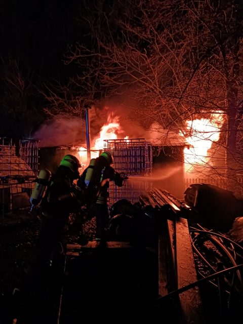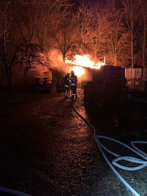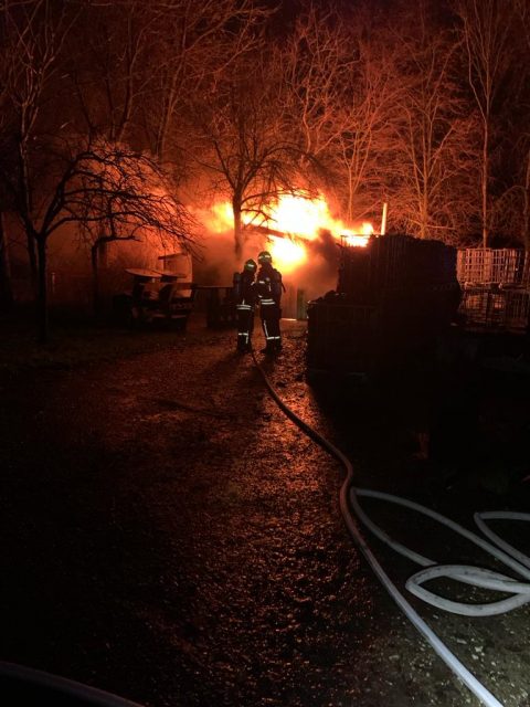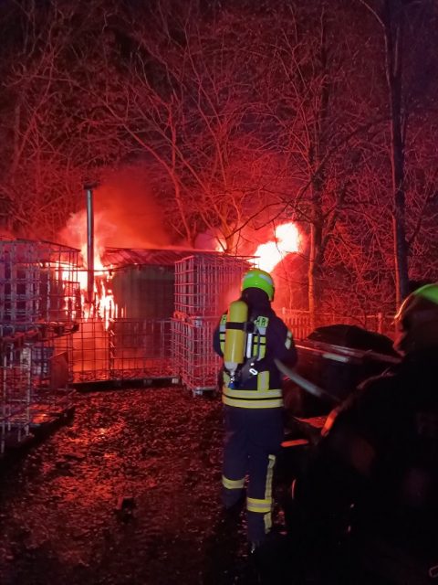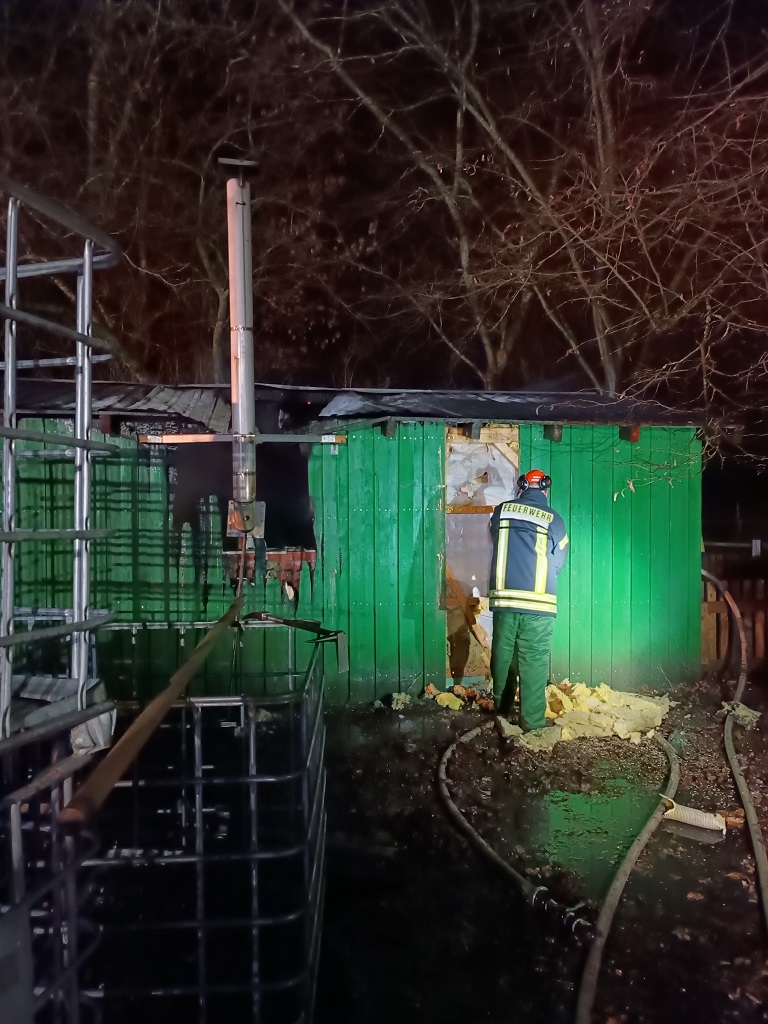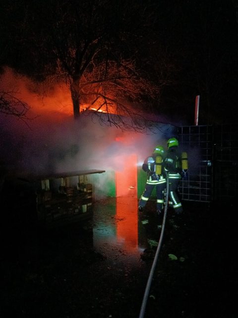 Gegen 19:36 Uhr wurde der Löschzug Gescher zu einer brennenden Gartnehütte nach Estern alarmiert. Bei Eintreffen der ersten Kräfte stand die ca 6 x 8 m große Gartenhütte bereits in Vollbrand. Die Feuerwehr setzte daraufhin zunächst 3 Trupps mit Strahlrohren unter Atemschutz im Außenangriff ein. Im weiteren Verlauf konnte die Hütte unter Atemschutz betreten werden. Um an alle Brandnester zu gelangen musste die Zwischendecke sowie einige Innenwände entfernt werden. Zur Wasserversorgung wurden der Löschzug Hochmoor mit einem wasserführenden Fahrzeug nachalarmiert. Es wurde die Wasserversorgung mit zwei Löschgruppenfahrzeuge im Pendelverkehr zu einem Unterflurhydrant auf dem Südlohner Damm eingerichtet. Zum Abschluss wurde die gesamte Hütte mit der Wärmebildkamera kontrolliert und einige Bereiche wurden mit Schaummittel abgedeckt.