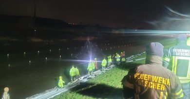 Gegen 13:10 Uhr wurde der Löschzug Hochmoor zu einer Ölspur auf dem Birkhahnweg gerufen. Von dort erstreckte sich eine ca 2,5 km lange Ölspur u.a. über die Pappelallee. Zudem breitete sich die Ölspur in Richtung eines Baches aus. Hier wurde schwimmfähiges Bindemittel eingebracht. Der Verursacher war bekannt. Die Ölspur auf der Straße wurde abgestreut und anschließend an die Polizei übergeben.