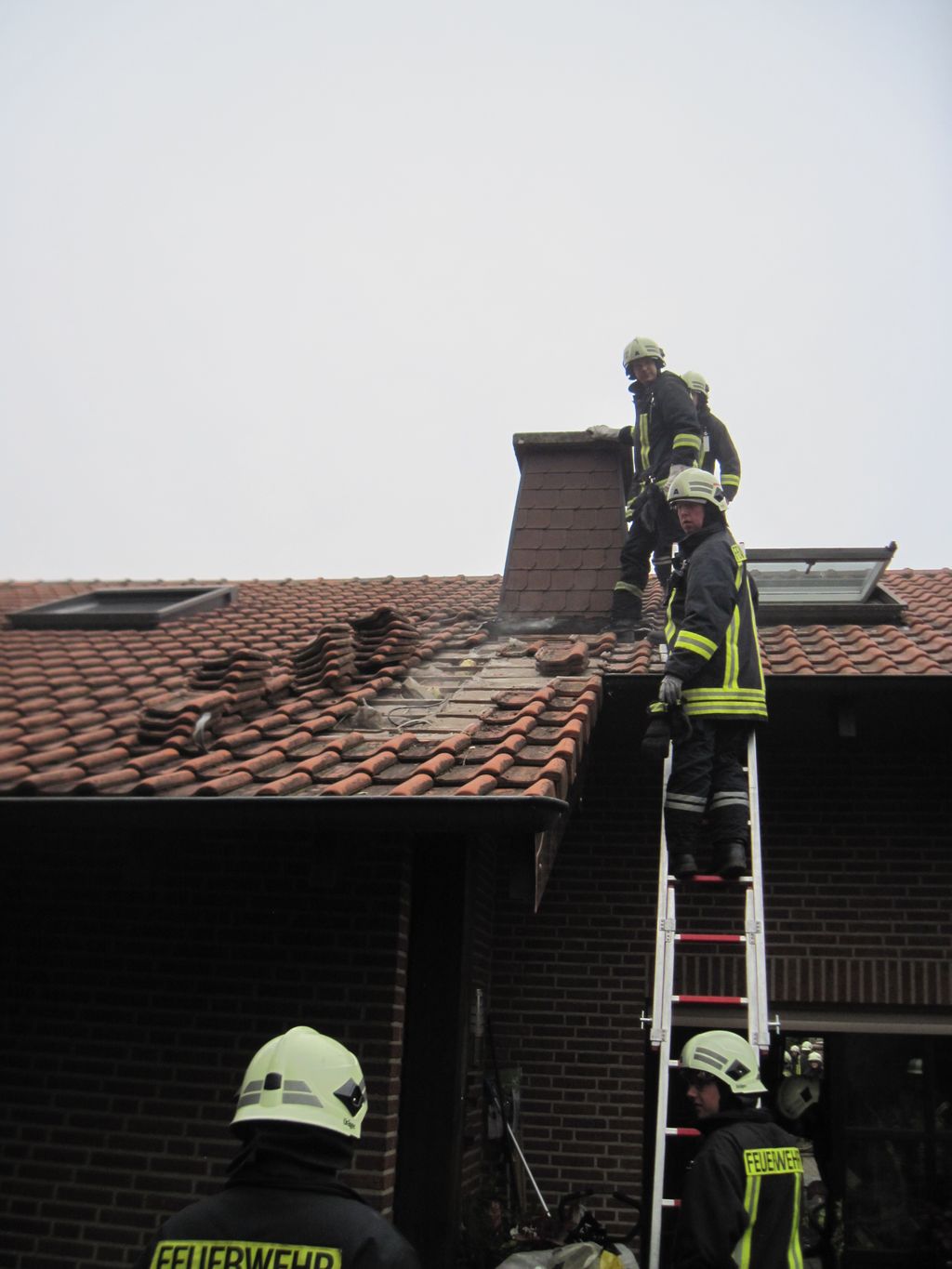 Zu einem Feuer ist die Feuerwehr Gescher gerufen worden. Bewohner hatten bemerkt, wie plötzlich Qualm aus einem Rolladenkasten sowie dem Dach aufstieg. Sie setzten sofort einen Notruf ab. Da von einem Gebäudebrand ausgegangen wurde wurde die gesamte Tagschleife der Feuerwehr Gescher alamriert. So waren kurz nach dem Notruf 30 Einsatzkräfte vor Ort. Eine erste Erkundung ergab, dass der Qualm wohl durch eine Hohlschicht zog und die Ursache im Bereich des Kamins zu finden sei, der kurz zuvor im genutzt wurde. Da die Temperatur in der Kaminverkleidung weiter anstieg wurde die Verkleidung schließlich mit einer Tigersäge und Brechwerkzeug geöffnet und der Brandherd so lokalisiert und bekämpft. Mit Hilfe der Wärmebildkamera wurde dann noch der Ergolg der Massnahme kontrolliert. Der hinzugezogene Bezirksschornsteinfeger legte den Kamin still.