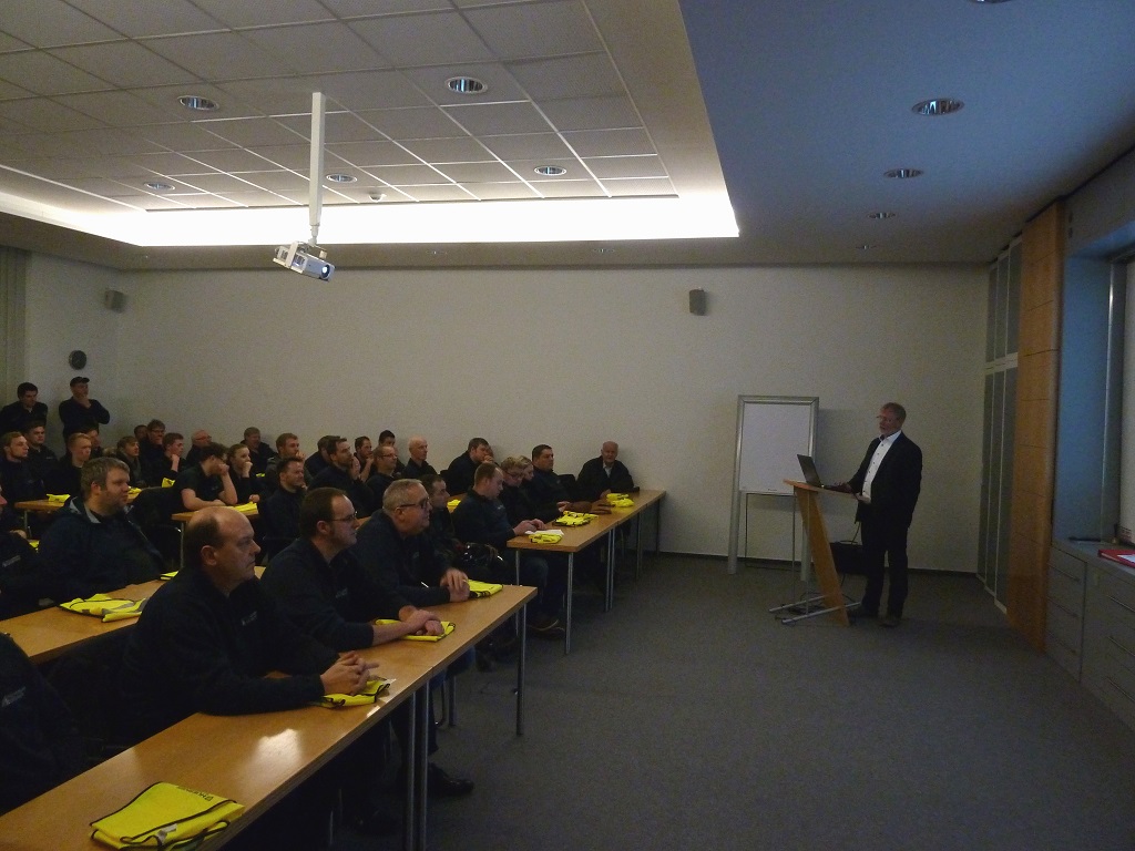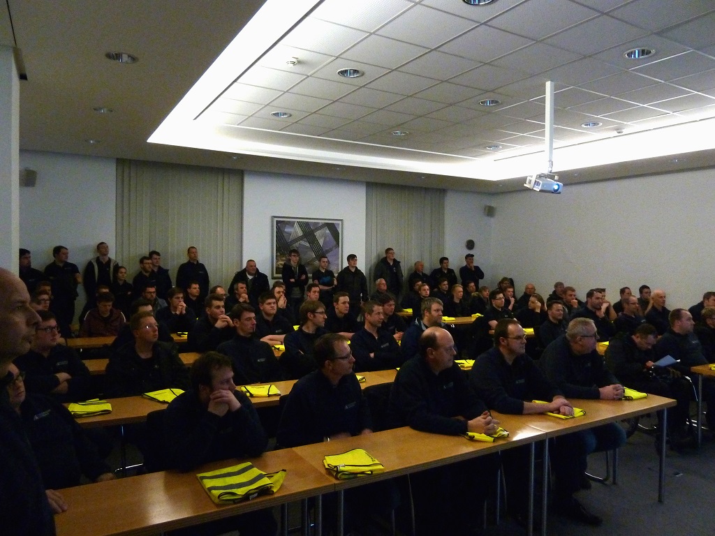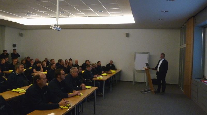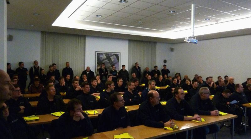 Einen besonderen Dienstabend verbrachten die Kameraden der Löschzüge Gescher und Hochmoor am vergangenen Donnerstag. Eine gute Ortskenntnis ist bei vielen Einsätzen der Feuerwehr immer wieder wichtig. So nutzten die Kameraden der Feuerwehr Gescher den Dienstabend, um sich das Unternehmen HUESKER Synthetic GmbH einmal genauer anzuschauen. Zu Beginn begrüßte der technischer Leiter der HUESKER Gruppe Heinz-Georg Richels die Kameraden in den eigenen Seminarräumen und stellte das Unternehmen kurz vor. Anschließend teilten sich die knapp 80 Kameraden in Gruppen auf und wurden von betriebsangehörigen Feuerwehrkameraden durch das Unternehmen geführt. Dabei wurden die wichtigsten Sicherheitseinrichtungen, Wasserentnahmestellen und Fluchtwege besichtigt. Zudem konnte sich so jeder der Kameraden einen Überblick über die möglichen Gefahrenpunkte auf dem großen Gelände verschaffen. Im Fall der Fälle hilft eine solche Ortskenntnis um schneller einzugreifen und größere Schäden zu verhindern. So konnten sich die Einsatzkräfte im Anschluss bei einem Getränk noch rege über die gewonnen Eindrücke austauschen und von den betriebsangehörigen Feuerwehrkameraden so manche Frage beantworten lassen.