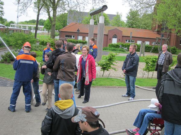 Dass so ein Nachmittag nicht nur für den Spass der Bewohner gemacht wird, verdeutlichte Elke Lölfing vom Brandschutzerzieherteam: „Es ist der Feuerwehr schon viel geholfen, wenn bei einem wirklichen Brand alle Bewohner das Gebäude verlassen konnten und nicht noch Personen gesucht werden müssen. Gleichzeitig lernen auch die Jugendfeuerwehrkameraden schon Hemmnisse beim Umgang mit behinderten Personen abzubauen.“