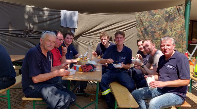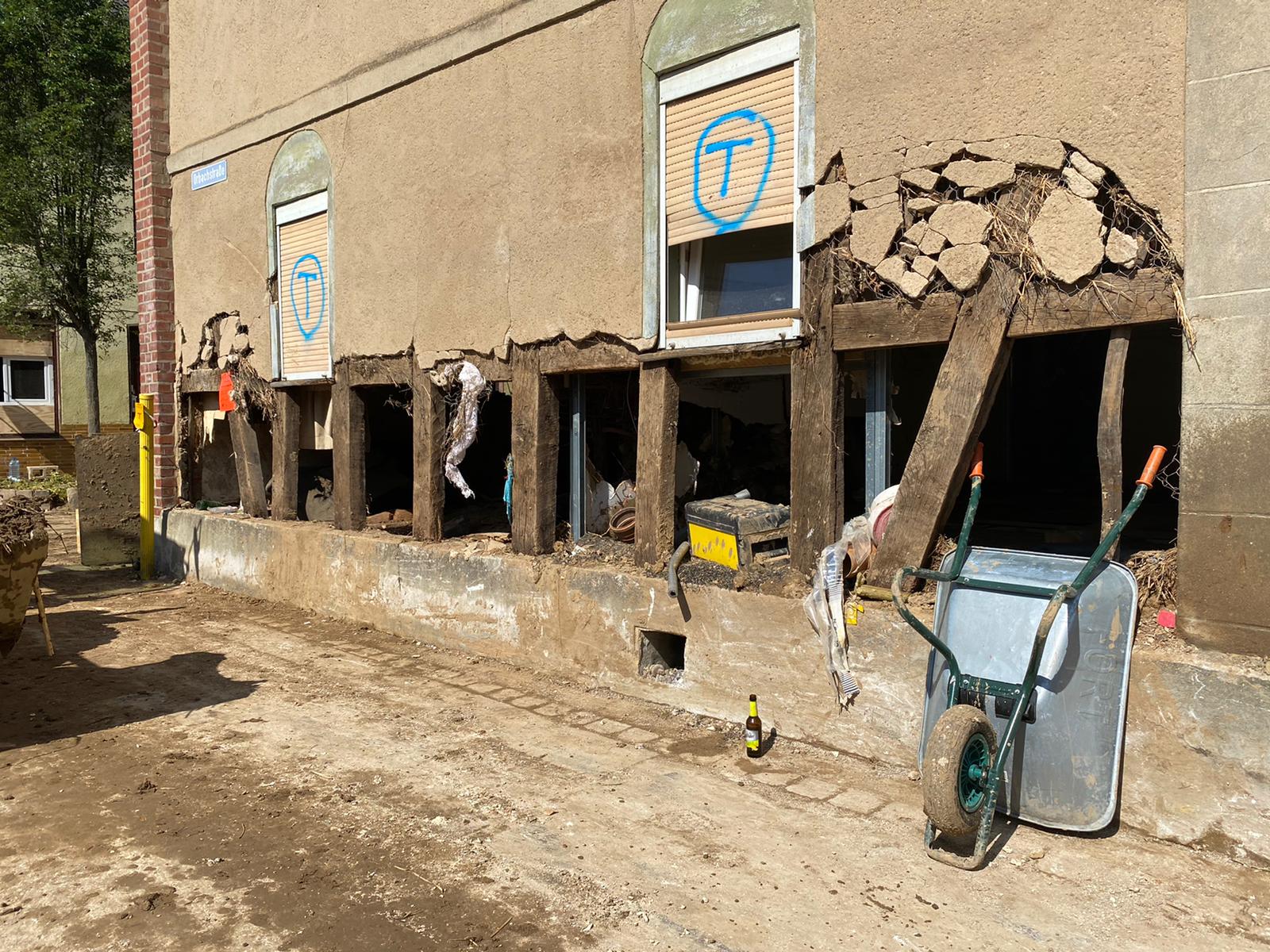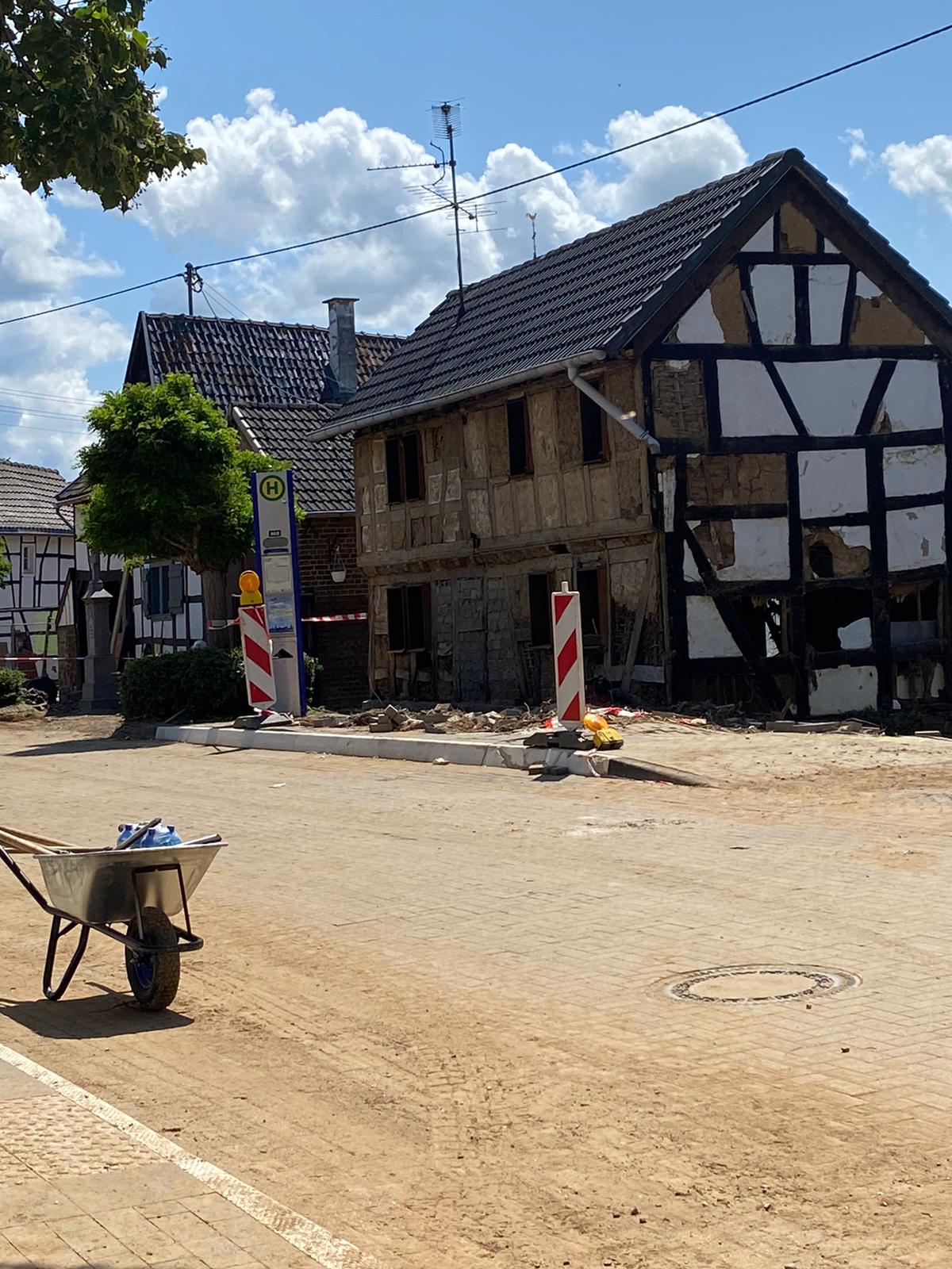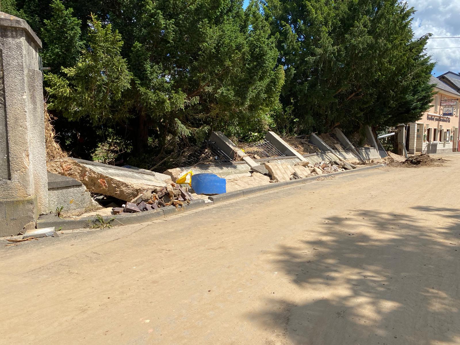 Nachdem sämtliche Hilfsgüter bei der Sammelstelle abgeladen wurden, begab sich die zehnköpfige Gruppe der Feuerwehr in den Ortsteil Odendorf, um dort bei den Aufräumarbeiten zu unterstützen. Dort war die Feuerwehr bereits am 14. & 15. Juli direkt nach dem Unwetter im Einsatz. Die Hilfsbereitschaft der Bevölkerung und anwesender Hilsfkräfte war allerdings so groß, dass die Gruppe nach kurzem Aufenthalt weiter in den ebenfalls betroffenen Euskirchener Stadtteil Schweinheim fuhr.