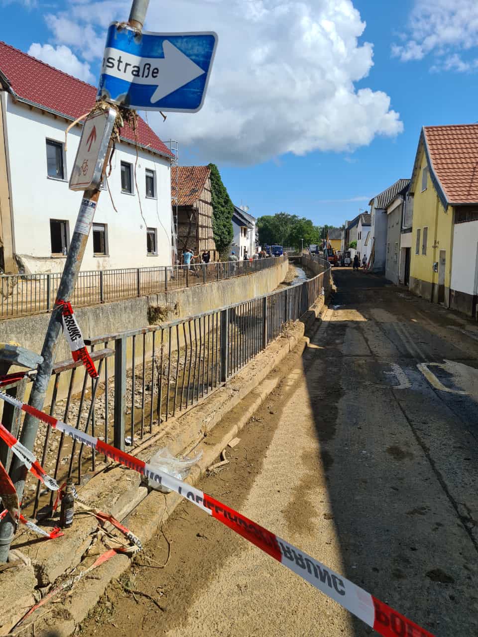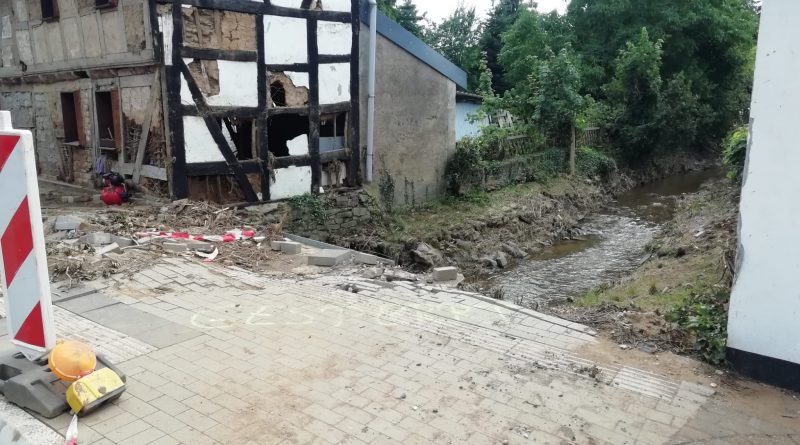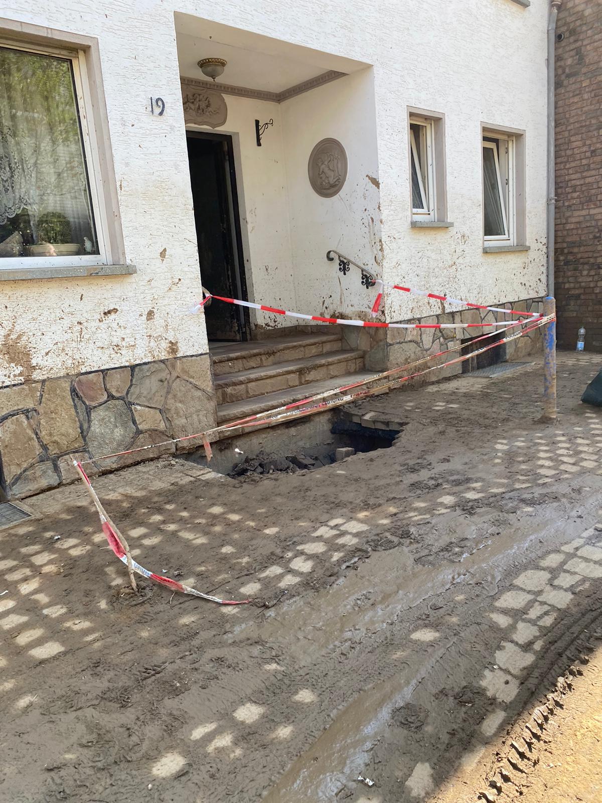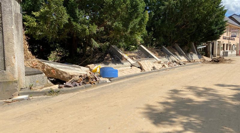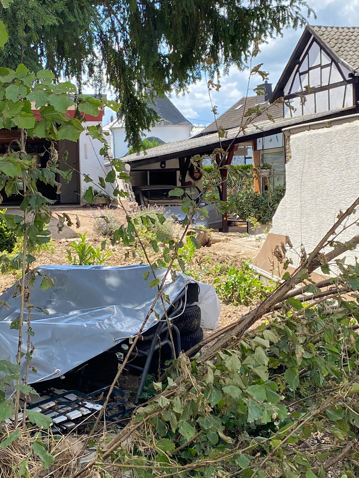 Nachdem sämtliche Hilfsgüter bei der Sammelstelle abgeladen wurden, begab sich die zehnköpfige Gruppe der Feuerwehr in den Ortsteil Odendorf, um dort bei den Aufräumarbeiten zu unterstützen. Dort war die Feuerwehr bereits am 14. & 15. Juli direkt nach dem Unwetter im Einsatz. Die Hilfsbereitschaft der Bevölkerung und anwesender Hilsfkräfte war allerdings so groß, dass die Gruppe nach kurzem Aufenthalt weiter in den ebenfalls betroffenen Euskirchener Stadtteil Schweinheim fuhr.