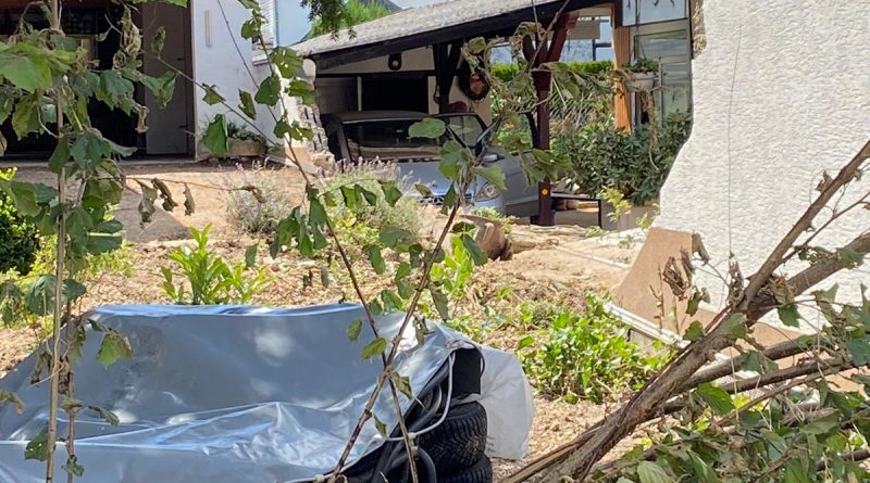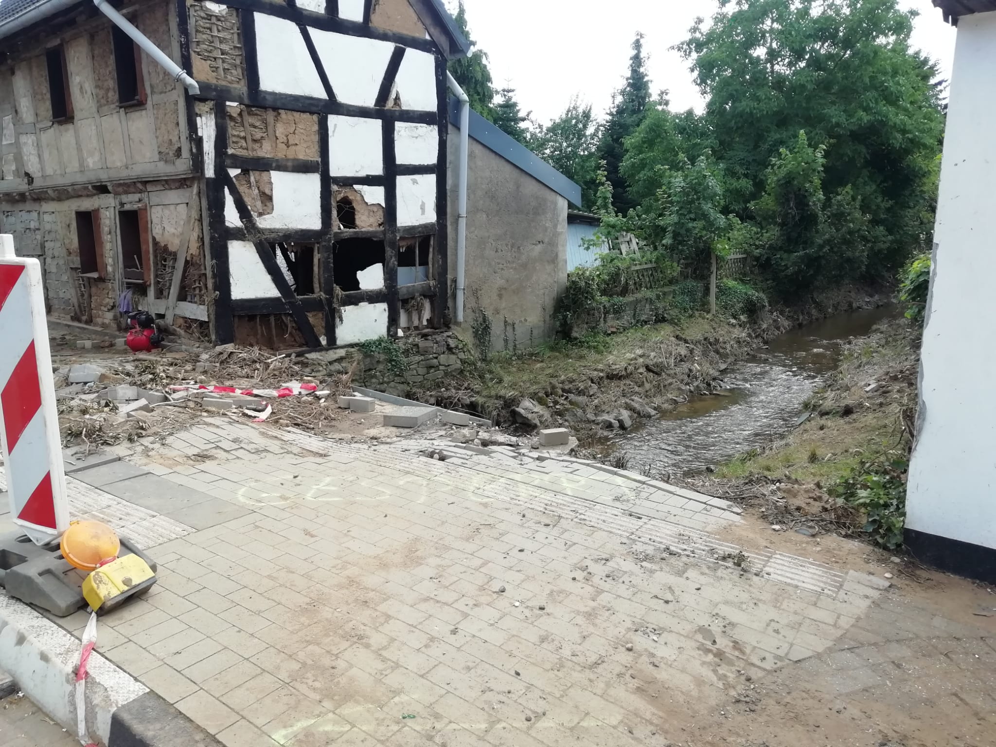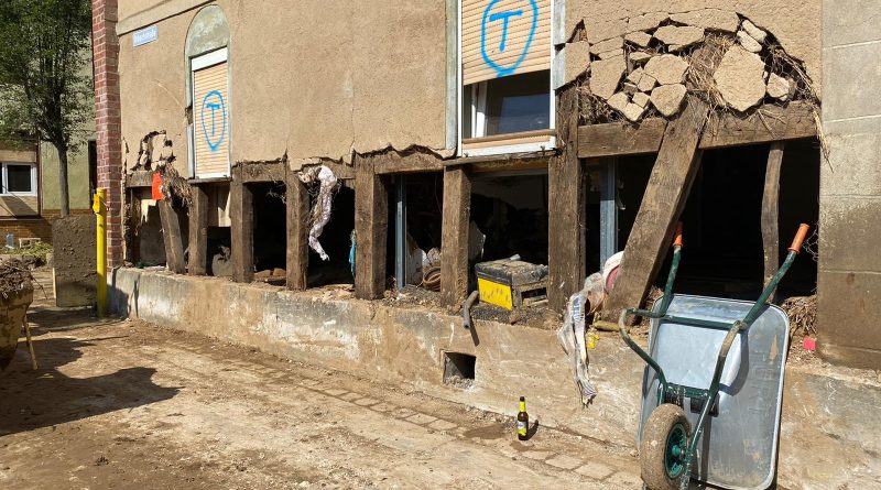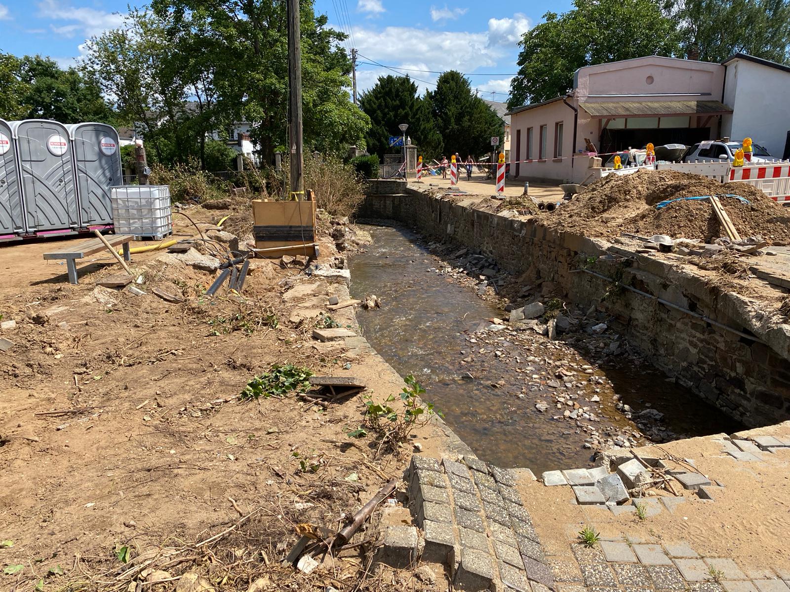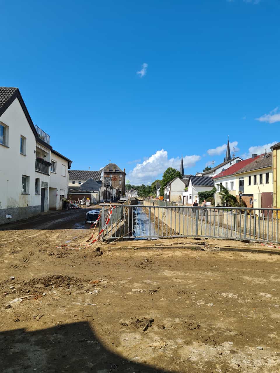 Nachdem sämtliche Hilfsgüter bei der Sammelstelle abgeladen wurden, begab sich die zehnköpfige Gruppe der Feuerwehr in den Ortsteil Odendorf, um dort bei den Aufräumarbeiten zu unterstützen. Dort war die Feuerwehr bereits am 14. & 15. Juli direkt nach dem Unwetter im Einsatz. Die Hilfsbereitschaft der Bevölkerung und anwesender Hilsfkräfte war allerdings so groß, dass die Gruppe nach kurzem Aufenthalt weiter in den ebenfalls betroffenen Euskirchener Stadtteil Schweinheim fuhr.
