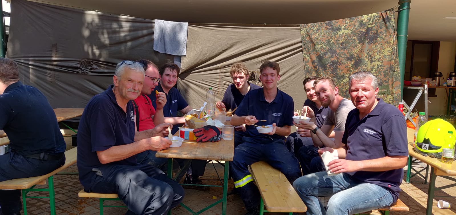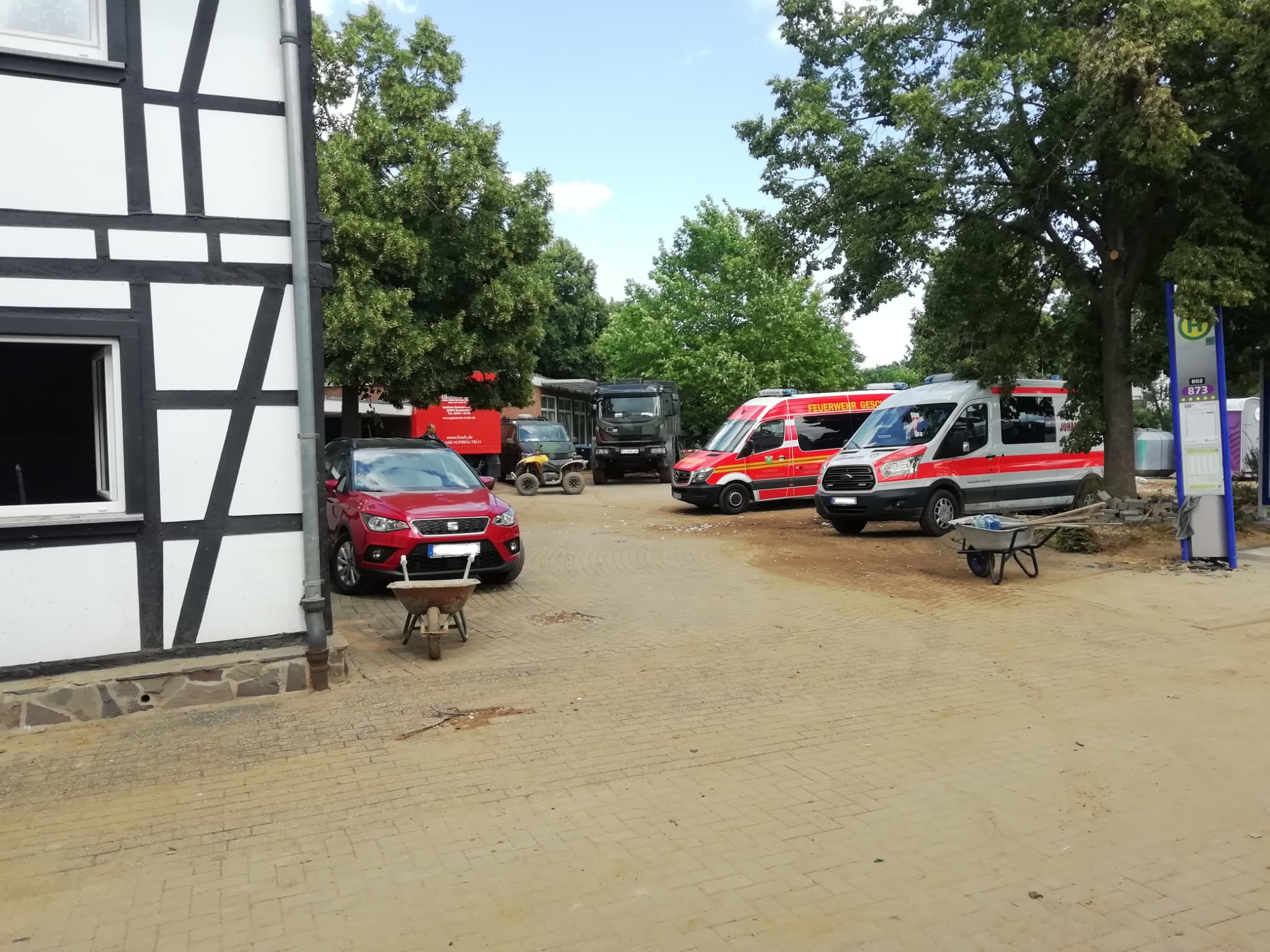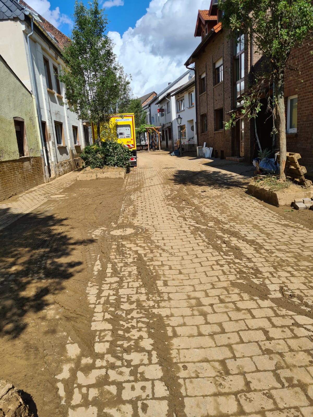 In der Ortsmitte, die als zentrale Anlaufstelle diente, wurde von weiteren Hilfsorganisationen und der Bundeswehr eine Erstversorgung durch Spenden sichergestellt.