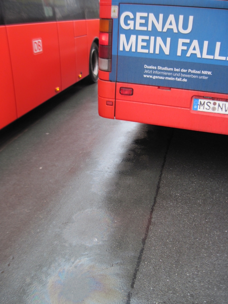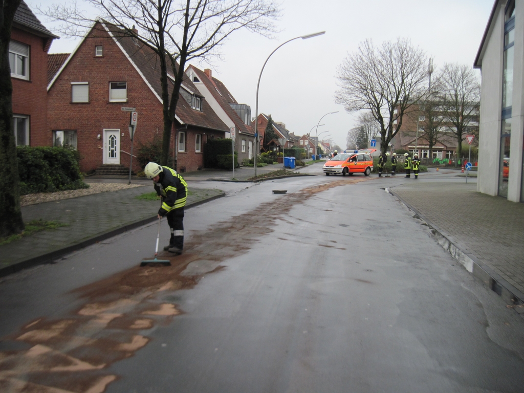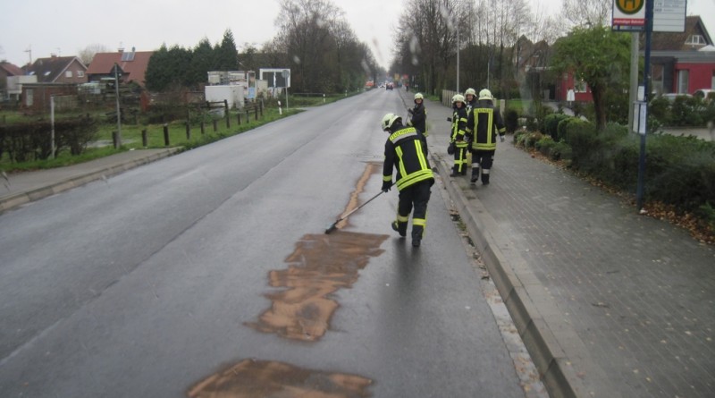 Zu einer Dieselspur in Hochmoor auf der Pappelallee sind die Löschzüge Hochmoor wie auch Gescher gerufen worden. Im Bereich der Pappelallee erstreckte sich die Dieselspur über eine Länge von 3 km. In Gescher wurden im Bereich der Bushaltestellen  ebenfalls Dieselspuren entdeckt. Da auch gleichzeitig die Feuerwehr Borken im gesamten Stadtgebiet tätig war lag der Verdacht nahe, dass es sich beim Verursacher um einen Lienbus handeln könnte. Noch bei der Erkundung konnten die Kameraden der Feuerwehr Gescher den Verursacher ausfindig machen. Ein Linienbus konnte auf Höhe des Museumhofes gestoppt werden. Dieser verlor aufgrund eines technischen Defektes kleine Mengen von Diesel vornehmlich beim Anhalten sowie bei der Abfahrt. Vermutlich hat der Bus die Spur in Borken ebenfalls verursacht, da er bevor er die Linie Coesfeld-Vreden-Coesfeld fuhr auf der Linie Coesfeld – Bocholt – Coesfeld unterwegs war. Die Polizei sowie das Ordnungsamt wurde zur weiteren Ermittlung hinzugezogen. Für die Feuerwehr Gescher war der Einsatz  nach ca. 1,5 Stunde beendet.