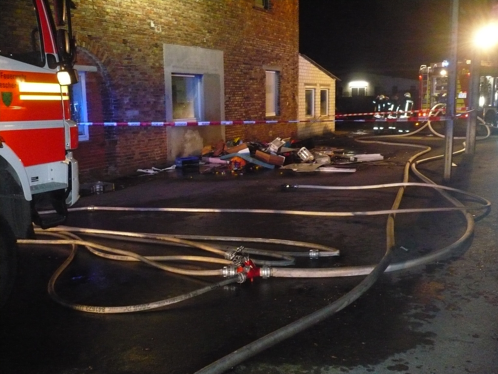 Die Wohnung im Obergeschoss war stark verraucht und es brannte im Kinderzimmer. Zur Brandbekämpfung wurden insgesamt 5 Trupps unter Atemschutz eingesetzt. Der Zugang zur Wohnng erfolgte über eine Außentreppe, die entsprechende Zugangstür wurde von der Feuerwehr aufgebrochen und das Feuer im Innenangriff gelöscht. Die genaue Brandursache und Schadenshöhe ist noch nicht bekannt. Die Brandstelle wurde durch die Kripo beschlagnahmt. Beide Wohnungen des Gebäudes im Obergeschoss und Erdgeschoss sind jedoch zur Zeit unbewohnbar. Die Bewohner müssen woanders untergebracht werden.