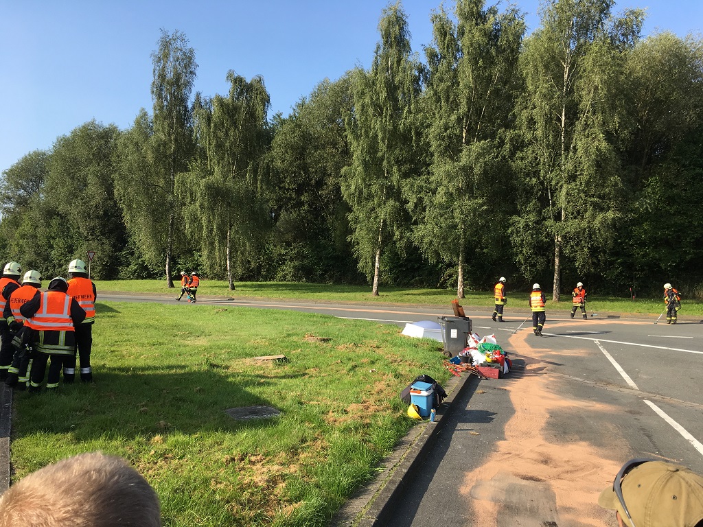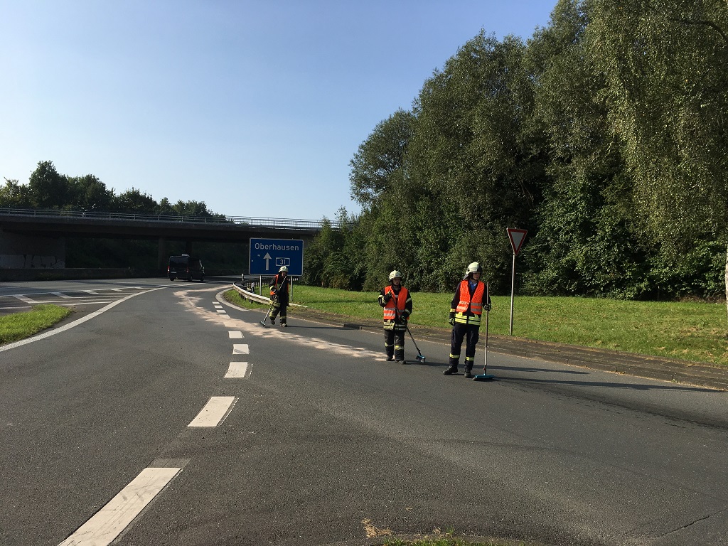 Am 27.08. und 28.08. wurde die Feuerwehr jeweils zu Ölspuren alarmiert. Am 27.08. erstreckte die Ölspur sich auf einer Länge von etwa 25 m im Kreisverkehr L 608/B525. Am Montag den 28.08 wurde die Feuerwehr zu einer Ölspur auf der Autobahn gerufen. Dort hatte ein Transporter auf dem Beschleunigungsstreifen des Parkplatzes Brooksbach einen Motordefekt. Daraufhin fuhr der Transporter rückwärts zurück auf den Parkplatz. Die Feuerwehr streute die entstandene Ölspur über einer Länge von etwa 150 m ab.