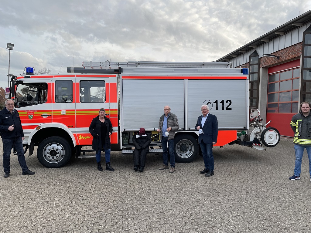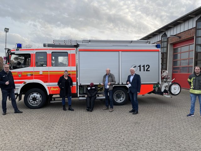 Die Feuerwehr konnte sich am Donnerstag über eine großzügige Spende freuen. Eine Abordnung des Vorstandes der Geno Gescher eG, überreichte der Feuerwehr eine neue Übungspuppe. Diese unterscheidet sich maßgeblich von anderen, da Sie eine lebensechte Puppe ist, welche 70 Kilogramm wiegt. Hierdurch kann eine realistische Menschenrettung beübt werden. Der Kamerad Andre Luters hatte sich für die Spende stark gemacht, weil die Feuerwehr Gescher bisher nur 20 Kilogramm schwere Übungspuppen besitzt. Stadtbrandinspektor Christian Nolte dankte dem Vorstand der Geno für die Spende.