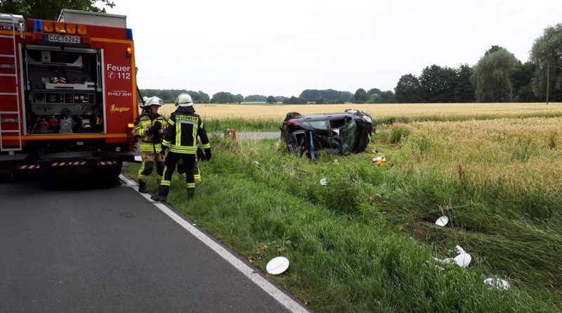 Noch auf der Rückfahrt wurde die Feuerwehr Gescher erneut alarmiert. Diesmal zu einem Verkehrsunfall auf der K46 mit einem PKW mit 3 verletzten Personen. Da die Höhe des Unfalls nicht genau bekannt war, wurde sowohl die Feuerwehr Coesfeld wie auch die Feuerwehr Gescher alarmiert. Die Einsatzstelle befand sich schließlich auf Coesfelder Gebiet und da die Kameraden aus Coesfeld zeitgleich vor Ort waren, mussten die Kameraden aus Gescher nicht mehr tätig werden.