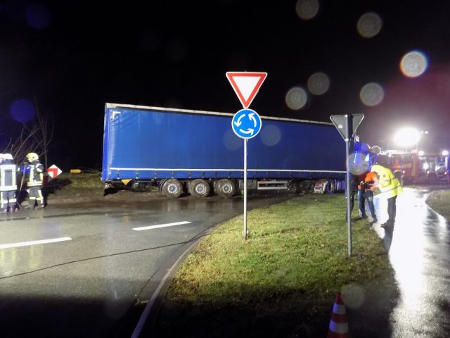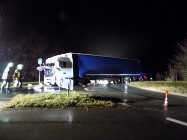 27.01.2020: LKW auf Kreisverkehr aufgefahren