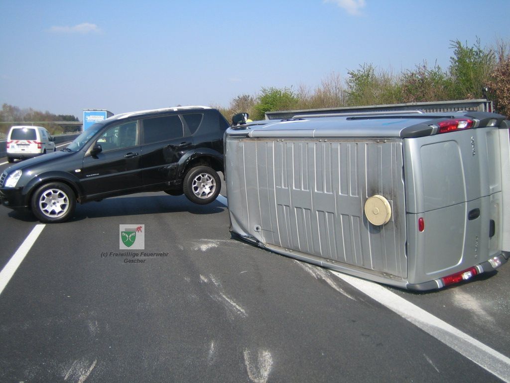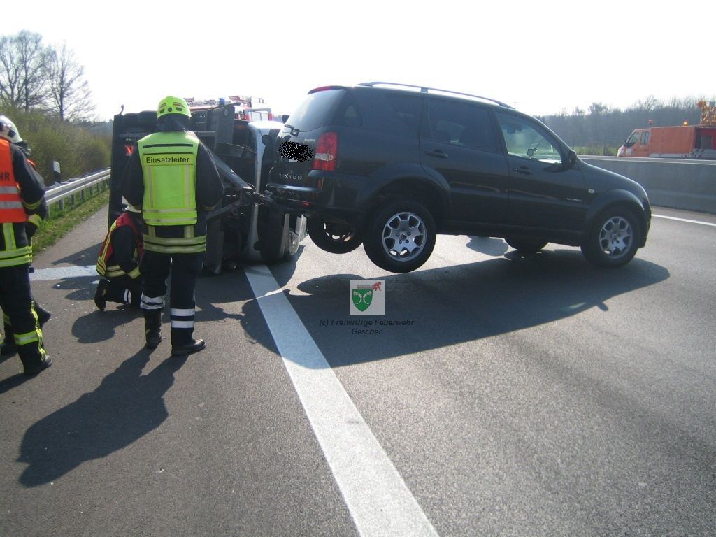 Der zweite Einsatz führte die Feuerwehr auf die A31. Hier wurde ein Verkehrsunfall in Fahrtrichtung Legden mit eingeklemmten Personen gemeldet. Am Einsatzort stellte sich heraus, das bei einem PKW mit Anhänger der Anhänger aufschaukelte und auf die Fahrbahn kippte. Der PKW kam dabei quer zur Fahrtrichtung zum Stehen. Die Personen waren nicht eingeklemmt und auch nicht verletzt. Die Feuerwehr sicherte die Unfallstelle ab.