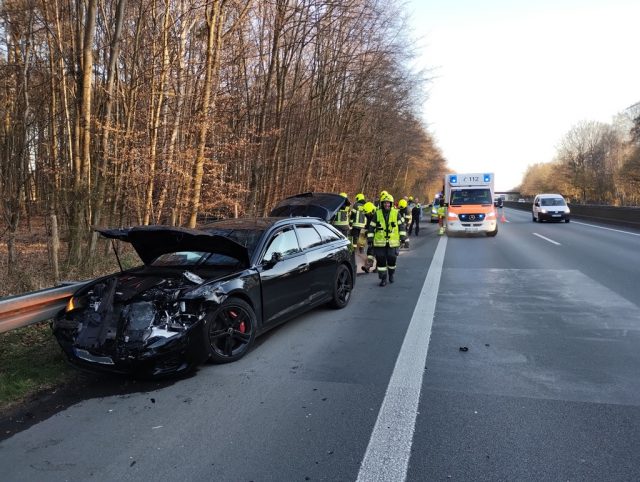 Gegen 17:57 Uhr wurde die Feuerwehr Gescher zu einem Verkehrsunfall auf die A31 in Fahrtrichtung Emden gerufen zur Absicherung des Rettungsdienstes. Dort war es zu einem Verkehrsunfall zwischen einem LKW und einem PKW gekommen. Dabei wurde eine Person verletzt und mit dem Rettungswagen ins Krankenhaus gebracht. Die Feuerwehr sicherte zunächst die Einsatzstelle ab und kontrolliere den PKW mit der Wärmebildkamera auf eine mögliche Hitzeentwicklung. Auslaufende Betriebsstoffe wurden mit Bindemittel abgestumpft.