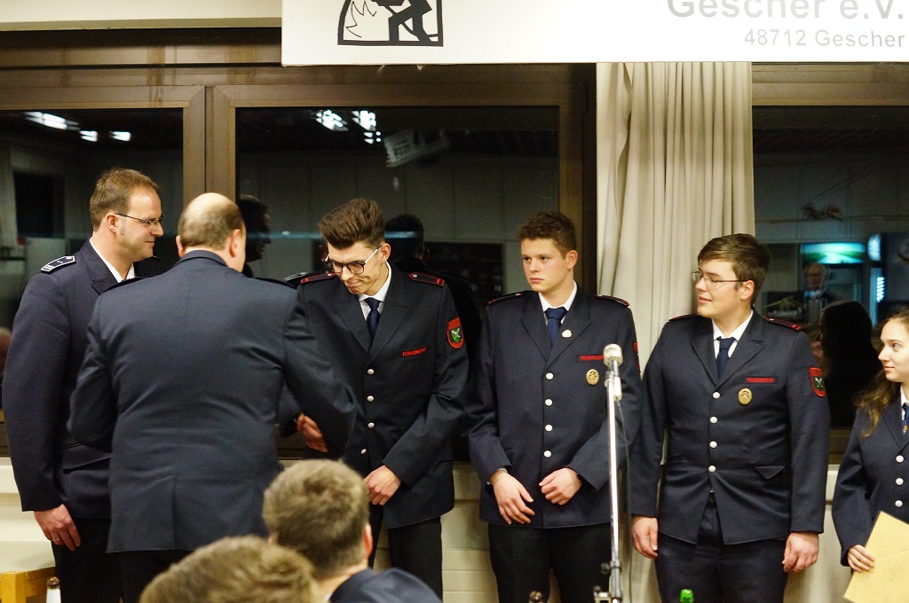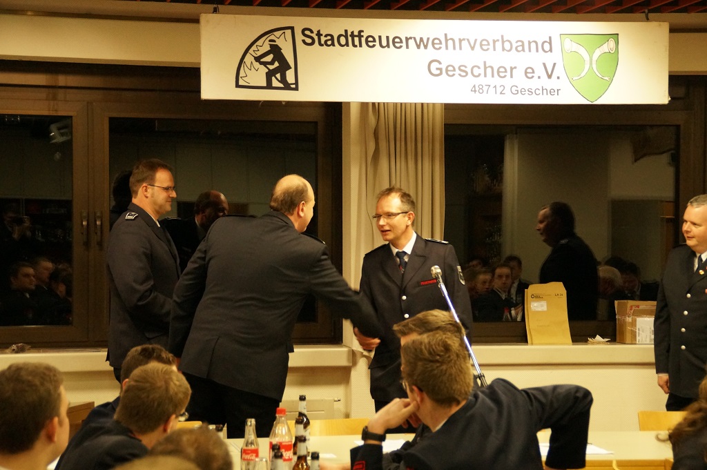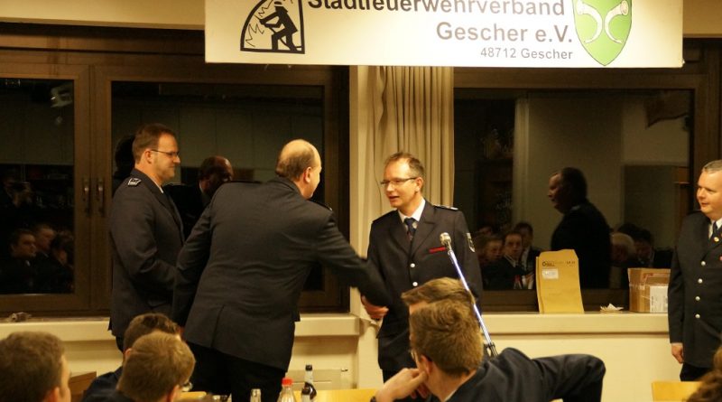 Einen Wechsel des Sicherheitsbeauftragten der Feuerwehr Gescher stand dann auch noch auf dem Programm. Für seine beinhae 18 Jährigen Tätigkeit als Sicherheitsbeauftragter erhielt Alexander Weever ein Präsent vond er Feuerwehr. Anschließend wurde Johannes Watermeier als neuer Sicherheitsbeauftragter ernannt.