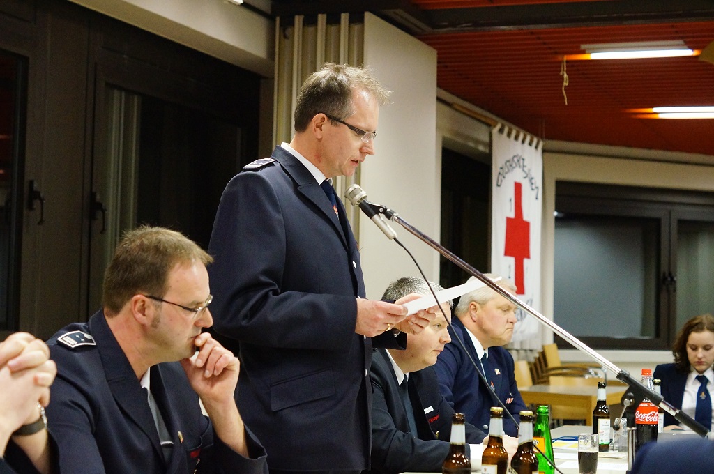 Nun stand der Bericht des Schriftführers Andreas Rudde über die besonderen Ereignisse innerhalb der Feuerwehr in 2018 an. Dabei wurde wieder deutlich wie vielfältig die Erlebnisse in der Feuerwehr sind, von  Einsatztätigkeitne aber auch dem reichhaltigen Vereinsleben berichtete er.