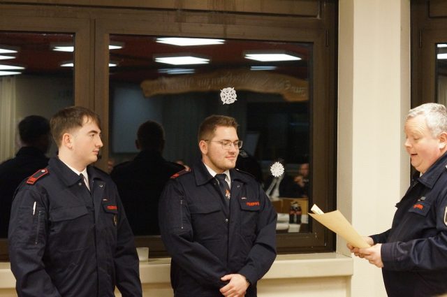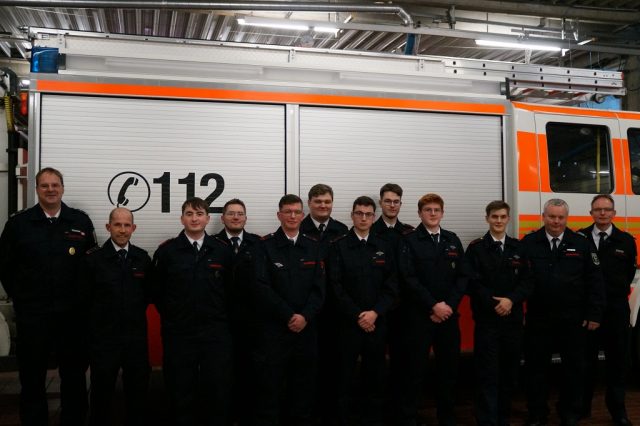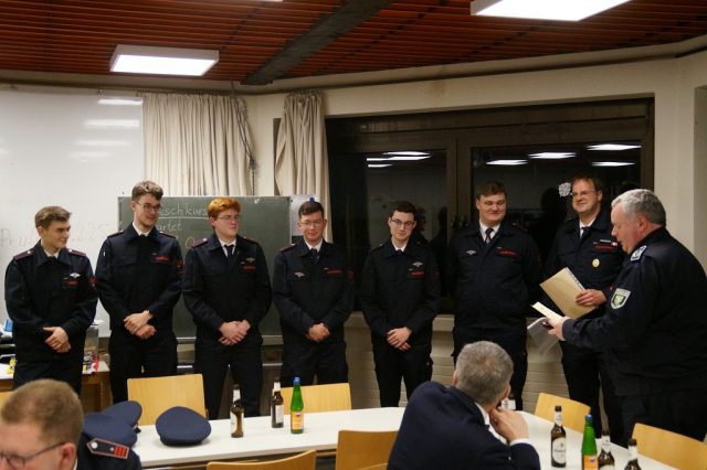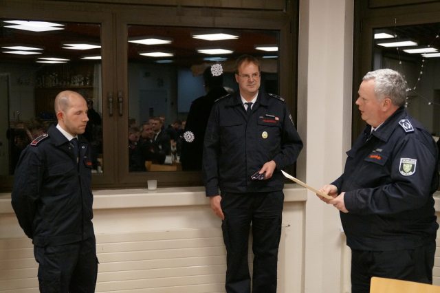So wurden zunächst die Kameraden Joos van Nuland, Sven Reining, Luis Wies, Lukas Berlin, Marcel Blommel und Max Heisterkamp nach Absolvierung der Grundausbildung zu Feuerwehrmännern befördert. Zu Unterbrandmeistern wurden Michael Schulte und Lars Schütte befördert. Anschließend wurde Fabian Büter zum stellvertretenden Gruppenführer der Gruppe 2 ernannt.
