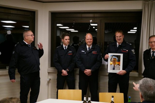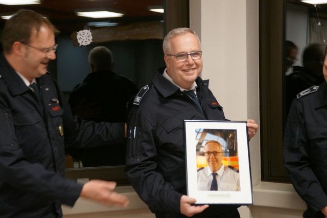 Schließlich erhielt Christian Nolte als ehemaliger Leiter der Feuerwehr sein Bild in einem Bilderrahmen, um in der Galerie der ehemaligen Leiter der Feuerwehr Gescher im Treppenturm aufgehangen zu werden.