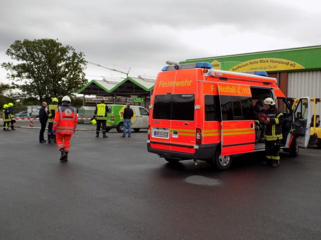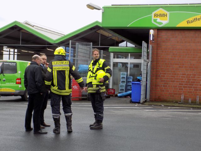 Beim eintreffen der ersten Einsatzkräfte stellte sich schnell heraus das es aus bislang ungeklärten Gründen zu einer Explosion am Raiffeisenmarkt und nicht wie gemeldet an der anliegenden Tankstelle kam. Bei dem Unfall wurde ein Mitarbeiter schwer und zwei weiter leicht verletzt. Die Einsatzstelle wurde durch die Feuerwehr gesichert, das bereitgestellte Löschmittel braucht nicht eingesetzt werden. Das komplette Gelände wurde zudem noch auf weitere brennbare Gase abgesucht. Im weiteren Verlauf wurden alle Mitarbeiter des Marktes durch Mitglieder der Löschzüge und des DRK betreut. Der Raiffeisenmarkt bleibt bis auf weiteres am heutigen Tag geschlossen.