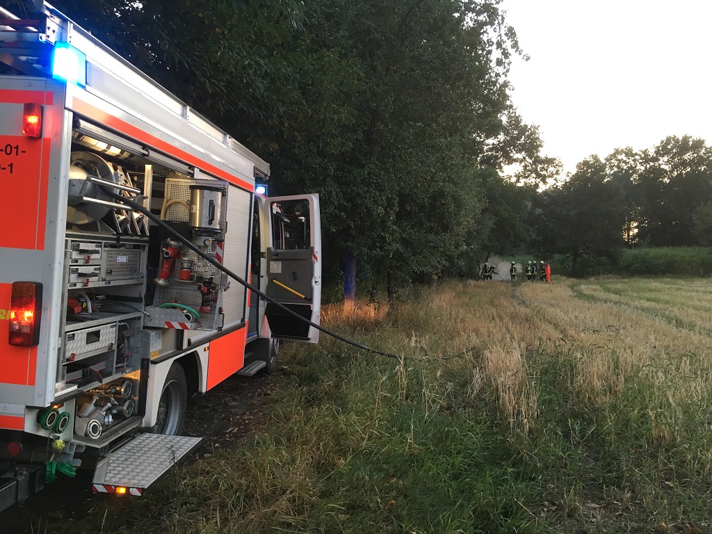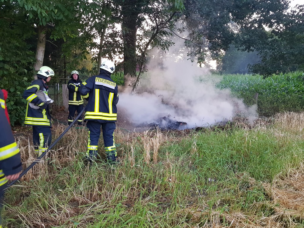 Sa. 28.07.2018 – 21:20 Uhr: Zu einem Feuer in Estern wurde die Feuerwehr gegen 21:20 Uhr gerufen. Ein aufmerksamer Bürger hatte Feuerschein in der Nähe der Angelteiche gesehen und die Feuerwehr gerufen. Diese stellte vor Ort ein vorsätzlich angezündetes Feuer trotz der enormen Trockenheit fest. Dies befand sich in unmittelbarer Nähe zu einem Stoppelfeld sowie unter Bäumen. Zudem war es unbeaufsichtigt. Die Feuerwehr löschte das Feuer. Der in der Zwischenzeit eingetroffene Verursacher wurde entsprechend belehrt und muss mit einer Anzeige durch die Polizei rechnen.