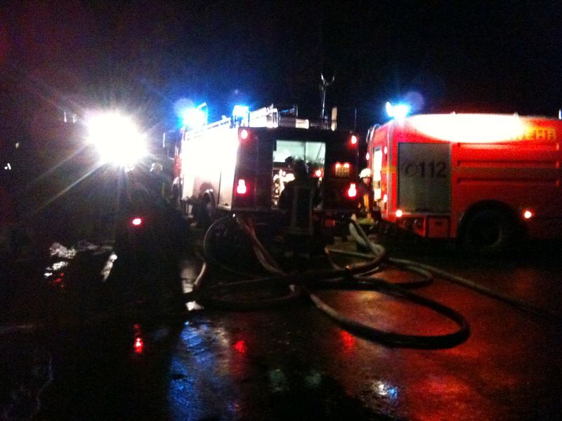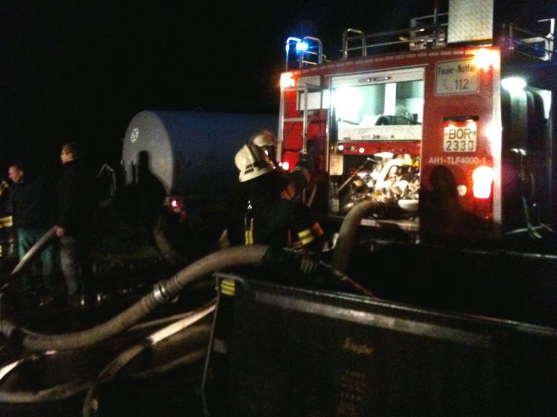 Zu einem Stallbrand in Legden sind am Montagabend 3 Kameraden der Feuerwehr Gescher mit dem Tanklöschfahrzeug (TLF) zur Unterstützung ausgerückt. Vor Ort mußte mehrmals im Pendelverkehr Wasser aus der etwa 4 km entfernten Ortschaft Legden zur Einsatzstelle transportiert werden. Zeitgleich wurde auch ein Wassersack aufgebaut, um das mit Güllebehältern herbeigebrachte Wasser zwischenzuspeichern und gefiltert weiter zu pumpen. Bei dem Brand sind rund 600 Ferkel ums Leben gekommen und das Stallgebäude brannte komplett aus.