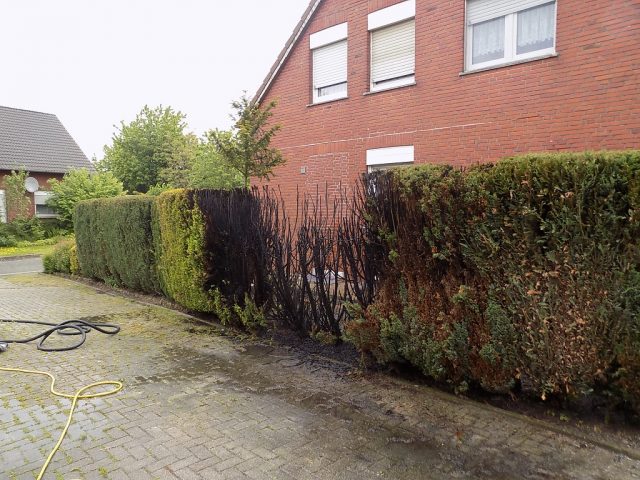 Gegen 11:30 Uhr wurde der Löschzug Hochmoor zu einem Heckenbrand auf dem Wollgrasweg alarmiert. Vor Ort konnte die Hecke mit dem Schnellangriff abgelöscht werden.