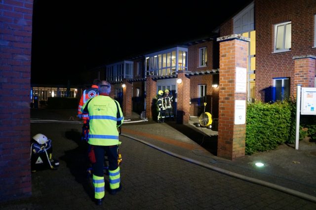 Gegen 22:30 Uhr wurde die Feuerwehr Gescher zu einem Altenwohnheim auf der Marienstraße alarmiert. Dort war ein Bewohnerzimmer verraucht. Bei Eintreffen der Feuerwehr war die Bewohnerin bereits durch die Pflegekräfte in ein anderes Zimmer gebracht worden und die Station war geräumt. Die Bewohnerin wurde durch den Rettungsdienst zur weiteren Untersuchung ins Krankenhaus Ahaus gebracht. Das betroffene Zimmer war verraucht. Die Feuerwehr erkundete unter Atemschutz mit einer Wärmebildkamera den Raum und fand auf einem Halogendeckenfluter einen verschmorrten Gegenstand. Der Deckenfluter wurde ins Freie gebracht und das betroffene Zimmer mit einem Hochleistungslüfter nach außen entraucht.